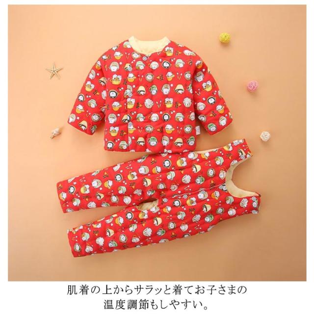 | サイズについての説明 | 70:着丈33cm バスト58cm ズボン丈57cm おすすめ身長65cm 2-6ヶ月適用/ 80:着丈37cm バスト64cm ズボン丈63cm おすすめ身長70cm 6-12ヶ月適用/ 90:着丈40cm バスト68cm ズボン丈70cm おすすめ身長80cm 12-18ヶ月適用/ 100:着丈43cm バスト72cm ズボン丈75cm おすすめ身長98cm 18-30ヶ月適用/ ※サイズ表の実寸法は商品によって1-3cm程度の誤差がある場合がございます。 |