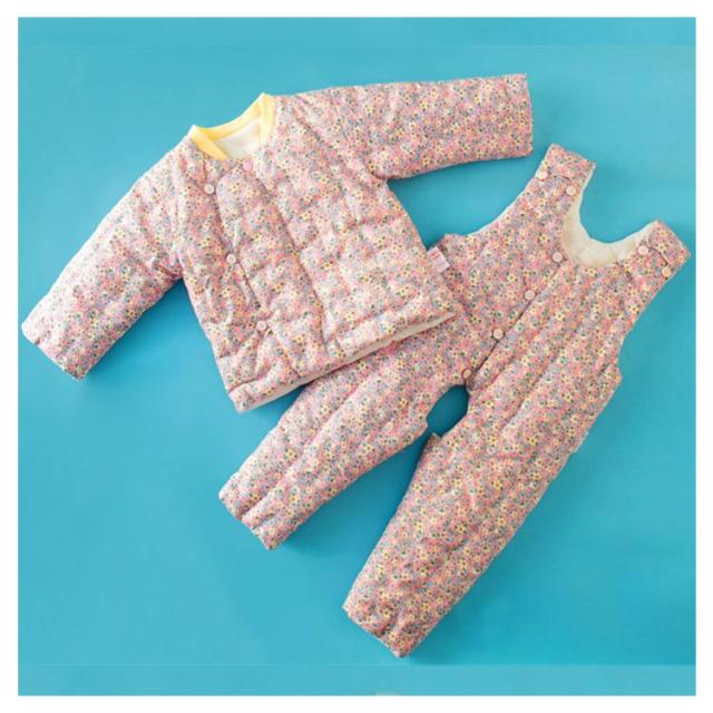 | かわいい厚手アウターとサロペットの2点セットが発売中! 明るい色味の服は赤ちゃんのかわいらしさを引き出してくれます。 チクチクもせず、寝返りもコロコロとしているので動きやすい。 肌着の上からサラッと着てお子さまの温度調節もしやすい。 出産祝などのギフトとしてもおすすめです。 | |