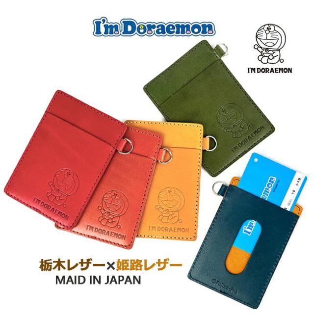 パスケース メンズ 本革【dor-54】I’m DORAEMON パスケース 牛革 ドラえもん 定期入れ icカード 栃木レザー 姫路レザー メンズ レディース 男性 女性 男女兼用 小学生 中学生 高校生 大学生 大人 旅行 修学旅行 通勤 通学 通塾 青 赤 黄色 橙 緑 ドラエモン プレゼント