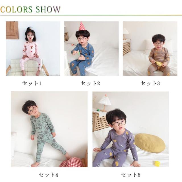 パジャマセットアップ キッズ ベビー 部屋着 寝間着 女の子 男の子 長袖 子供服 上下セット トップス 長ズボン キッズパジャマ ストレッチ 子供パジャマ プリント 柄物 寝巻き 可愛い 秋冬