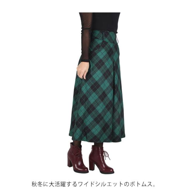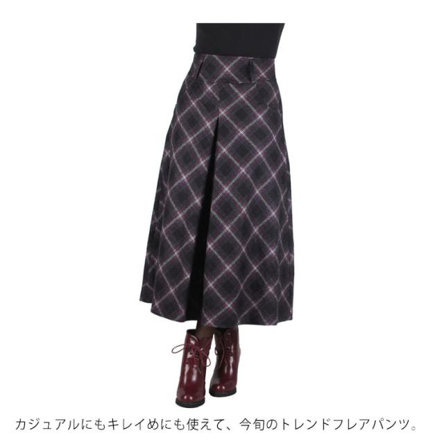 ウールパンツ ウール50% ガウチョパンツ フレアパンツ 秋冬 ワイドパンツ チェック スカーチョ キュロットパンツ ガウチョ ズボン ハイウエスト ウールタッチ 通勤 9分丈 おしゃれ 可愛い