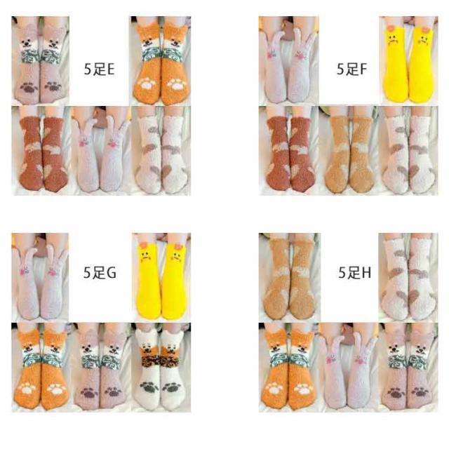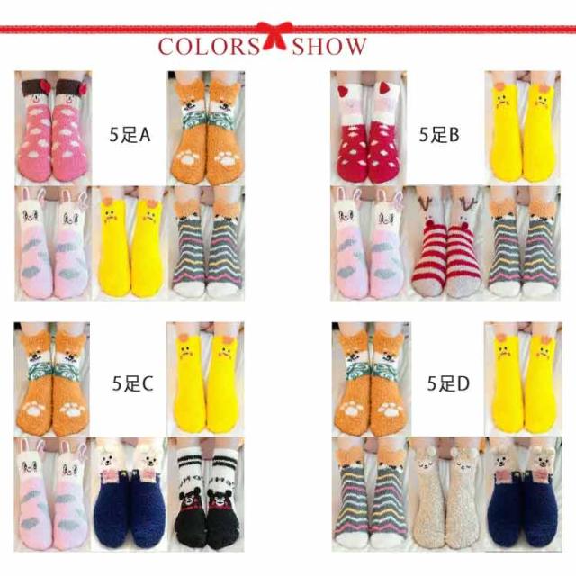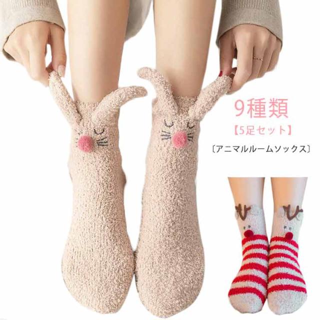 【5足セット】ルームソックス もこもこ レディース 暖かい ボア あったか 靴下 アニマル 動物 モコモコ かわいい おしゃれ 猫グッズ クリスマスグッズ 厚手 可愛い おもしろ くつ下 かわいい プレゼント ギフト コスプレ コスチューム