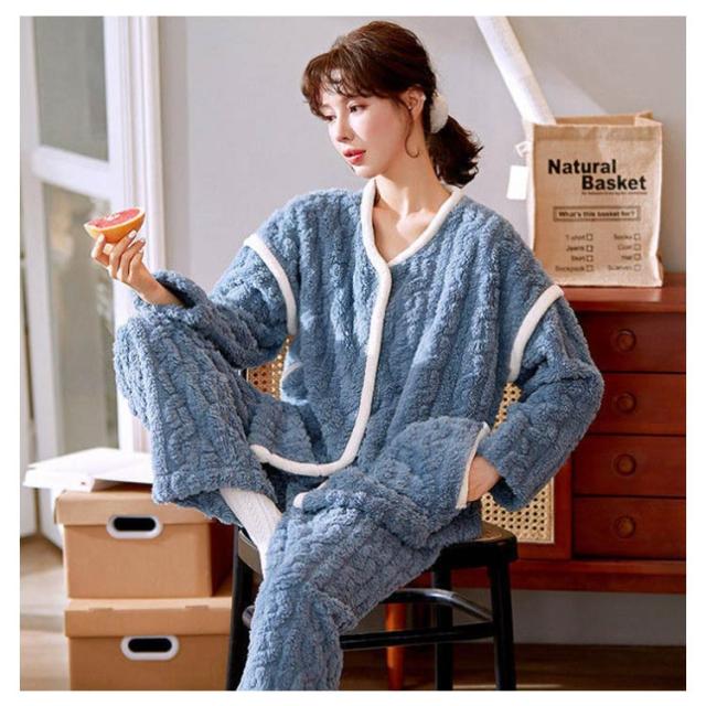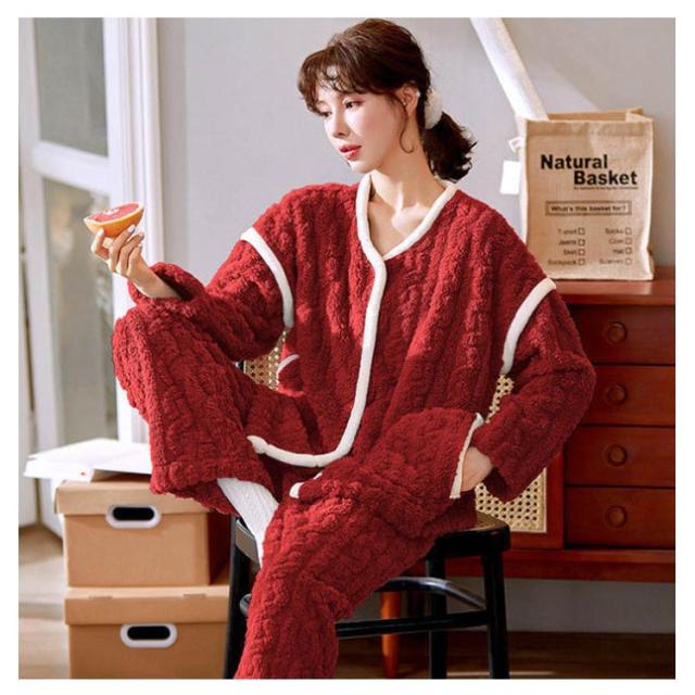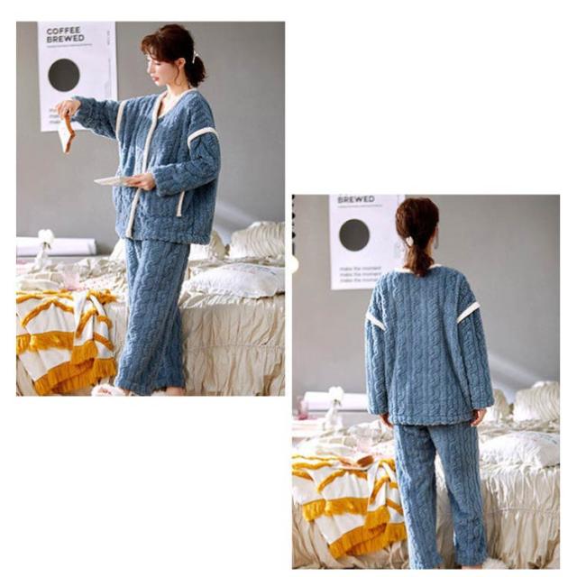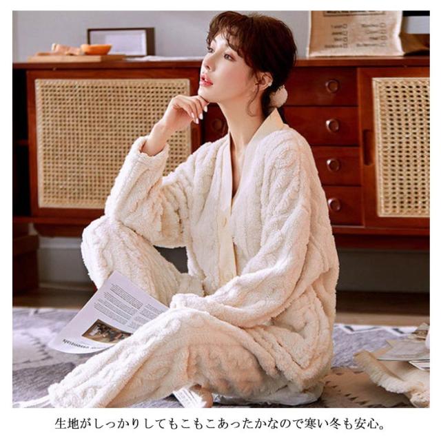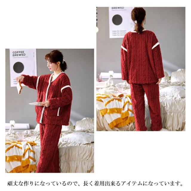 ルームウェア 上下セット パジャマ レディース 長袖 もこもこ ルームウェア カーディガン 前開き パンツ 2点セット 秋冬 裏起毛 ケーブル編み パジャマ ストレート あったかい 部屋着 着る毛布 防寒 かわいい マシュマロ 冬用