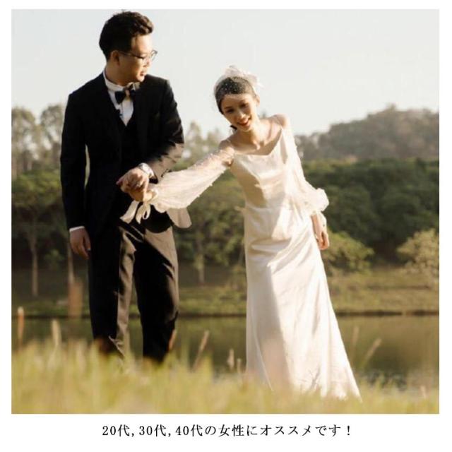 | ウエディングドレスには高品質な生地を厳選し、細部の縫製も丁寧など耐久性も優れた一着となっております。 20代,30代,40代の女性にオススメです! | |