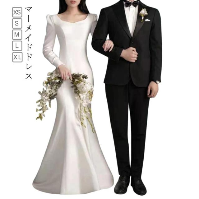 ウェディングドレス マーメイドライン タイトドレス ロング丈 ウェディング ウエディング パーティードレス フィッシュテール 長袖 結婚式 ワンピース 海外 挙式 ホワイト 白 ドレス