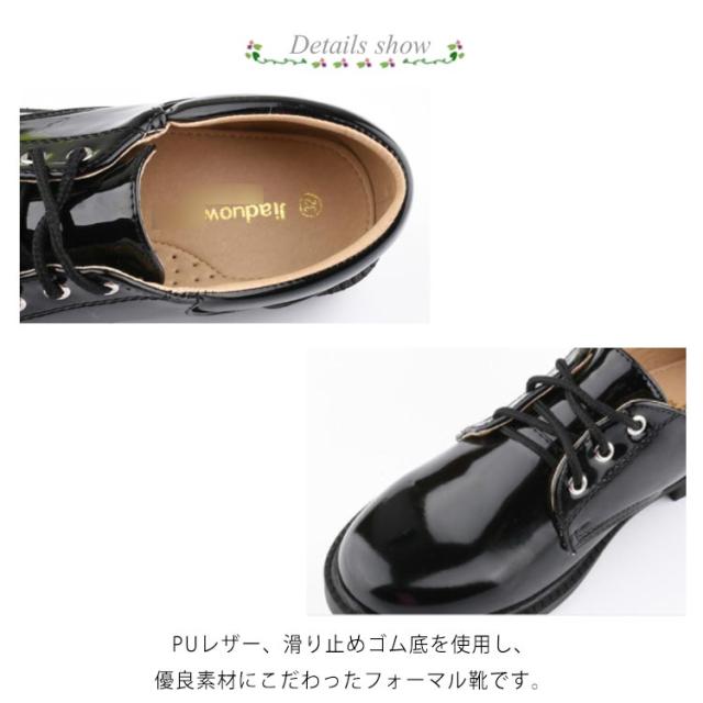 | 【 高品質な生地を採用 】PUレザー、滑り止めゴム底を使用し、優良素材にこだわったフォーマル靴です。しっかり縫製で型崩れしにくく、履き心地も軽く柔らかです。 【 洗練されたクールなデザイン 】英国風の靴紐デザインがおしゃれ感を引き出してくれます。ちょっぴり大人っぽい雰囲気で、スーツにもバッチリ決まります。 【 様々な場面で大活躍 】発表会、卒業式などのフォーマルなシーンにはもちろんのこと、お出掛けスタイルに普段使いにもオススメです。 | |