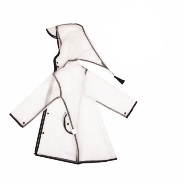 | シンプルながらも、タッセル付きのとんがりフードが可愛いレインコートです。 ブラックのパイピングはピンストライプでさりげないオシャレポイント。 性別を選ばないデザインなので兄妹で使いまわすことも可能! | |