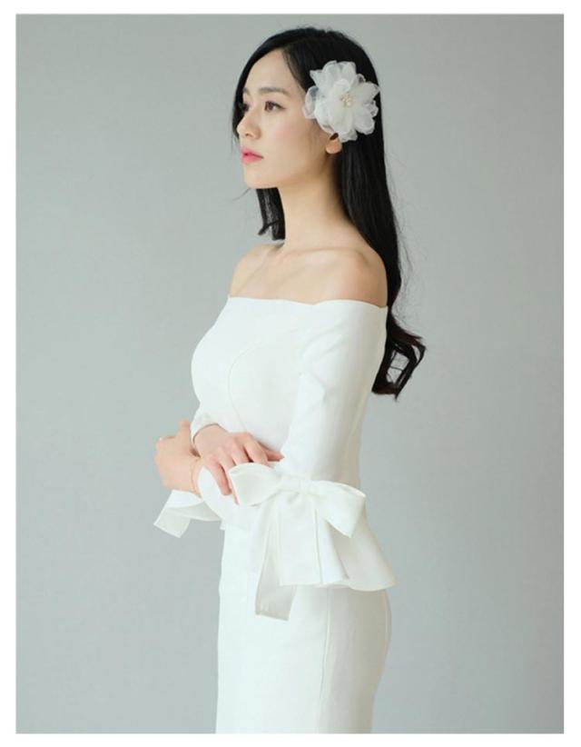 ウェディングドレス マーメイドライン ロングドレス ウェディング ウエディング オフショルダー パーティードレス フィッシュテール フレア袖 袖リボン 結婚式 ワンピース 海外 挙式 ホワイト 白 ロング丈 ドレス