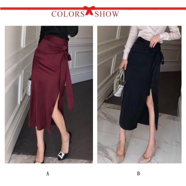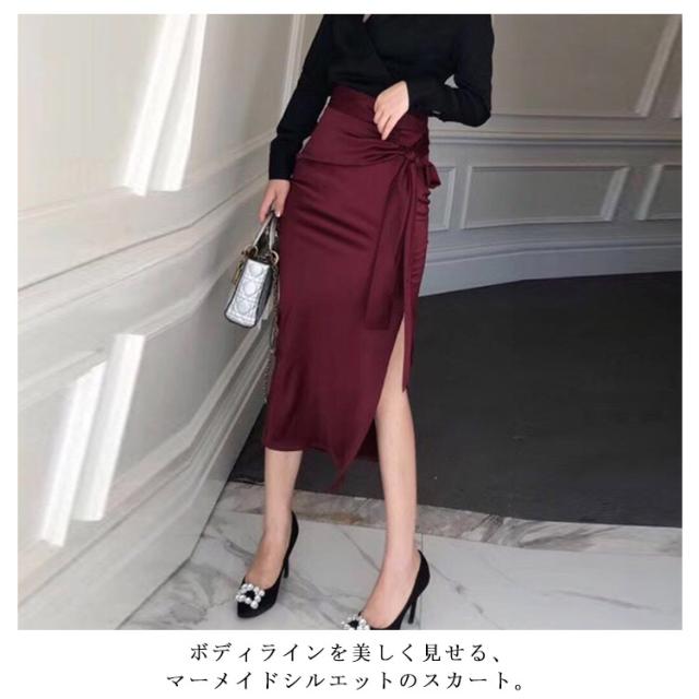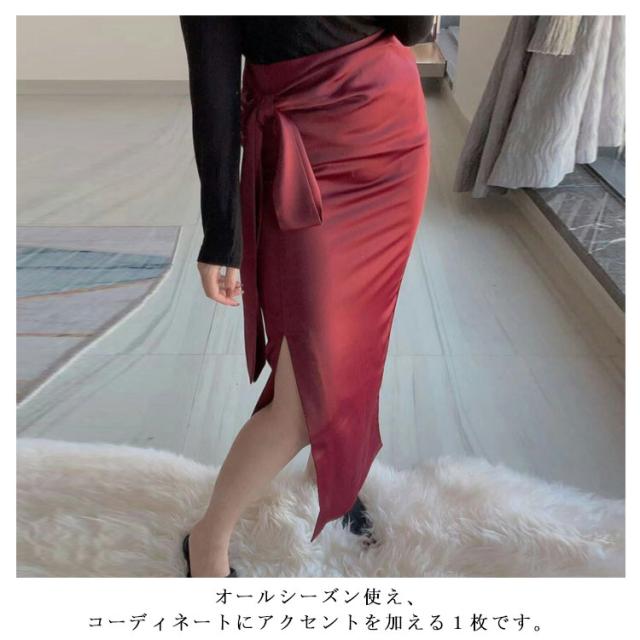 【送料無料】サテンタイトスカート サテン タイトスカート ロングスカート サテンスカート ウエストリボン ミモレ丈 ロング丈 スカート レディース フェミニン ロング 春 秋