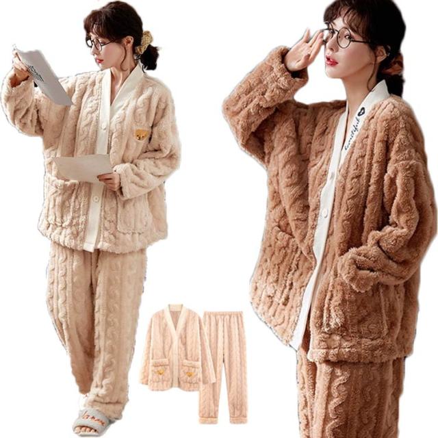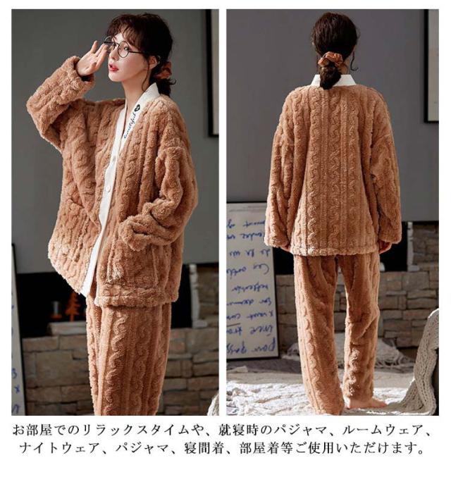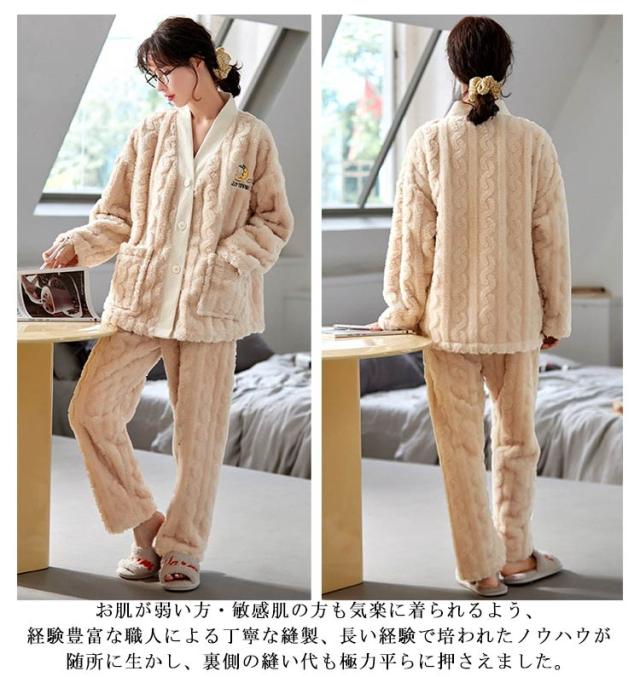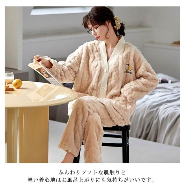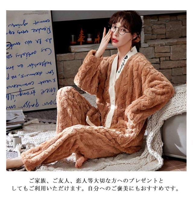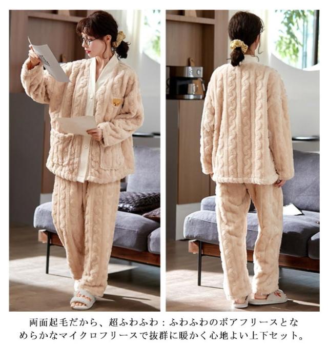 パジャマ ルームウェア 上下セット フランネル セットアップ 寝巻き レディース パジャマ もこもこ 厚地 肌触り 長袖 可愛い 秋冬 部屋着 暖か