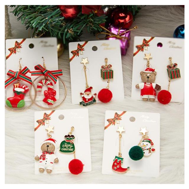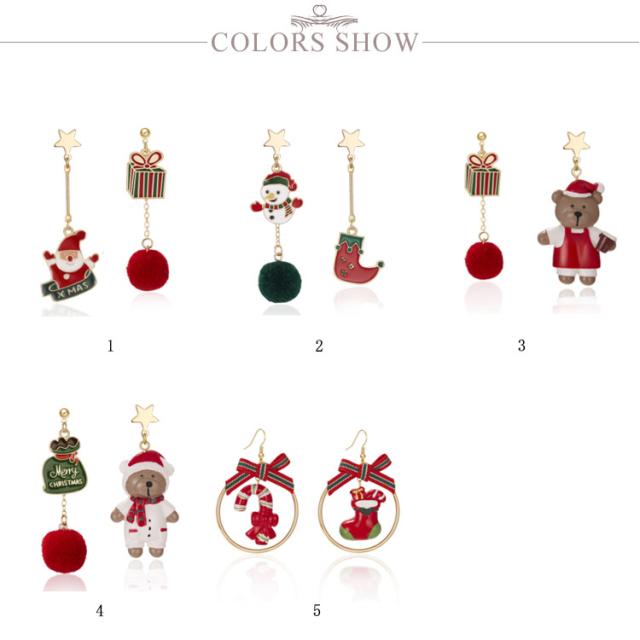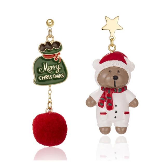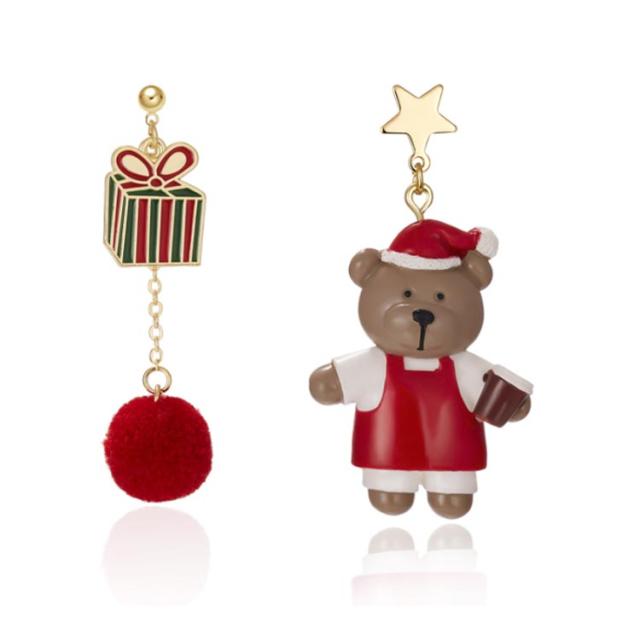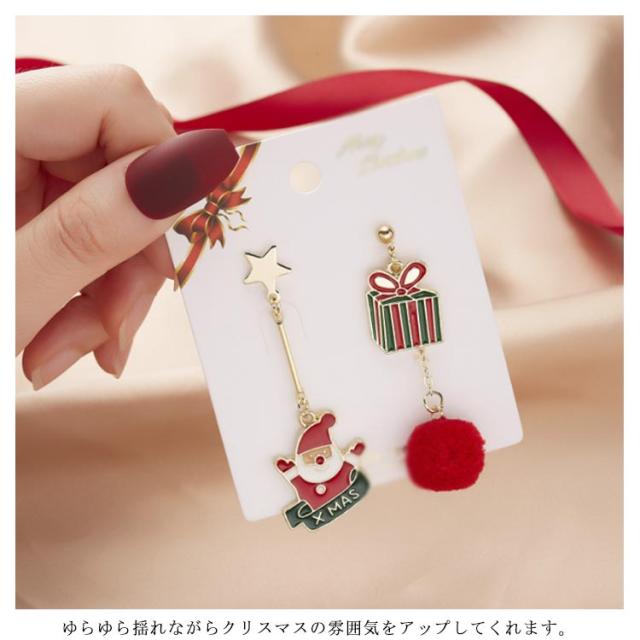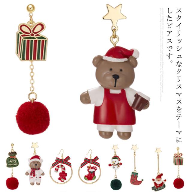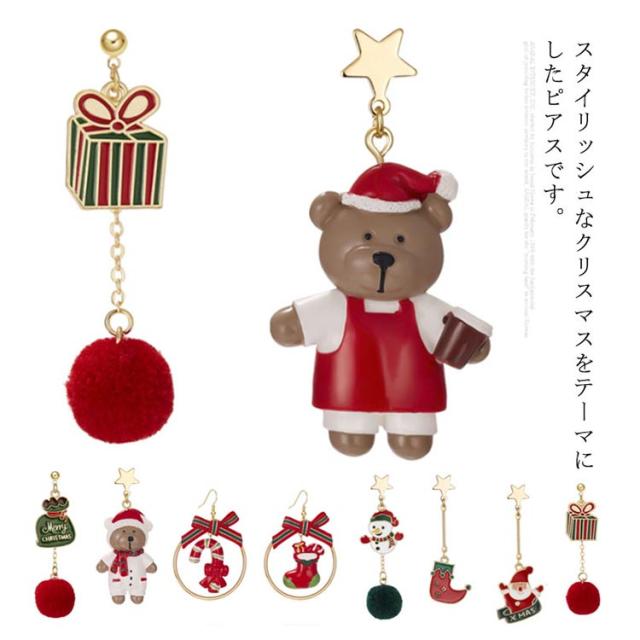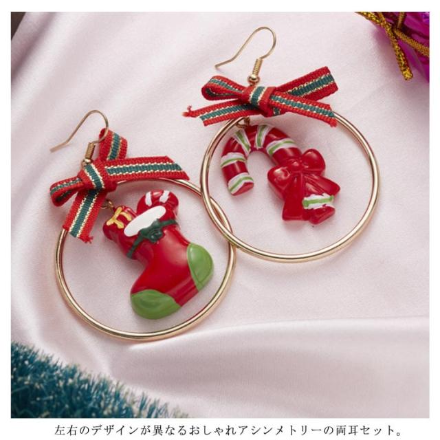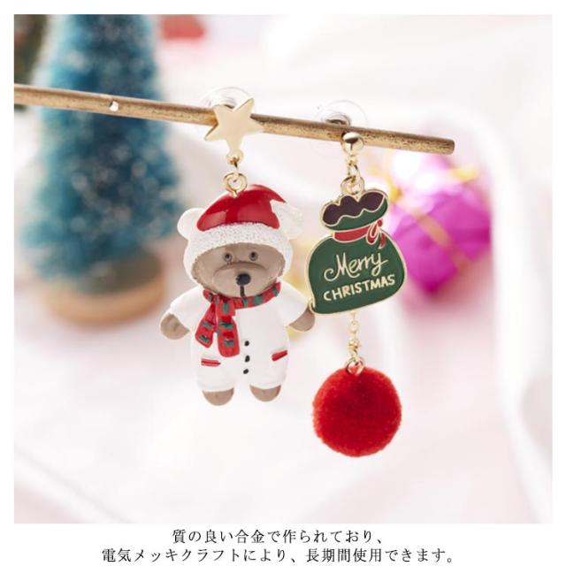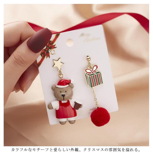ピアス クリスマス アシンメトリー フック サンタクロース 雪だるま 熊 リボン ロング 可愛い レディース ジュエリー アクセサリー パーティー プレゼント ギフト 贈り物 送料無料