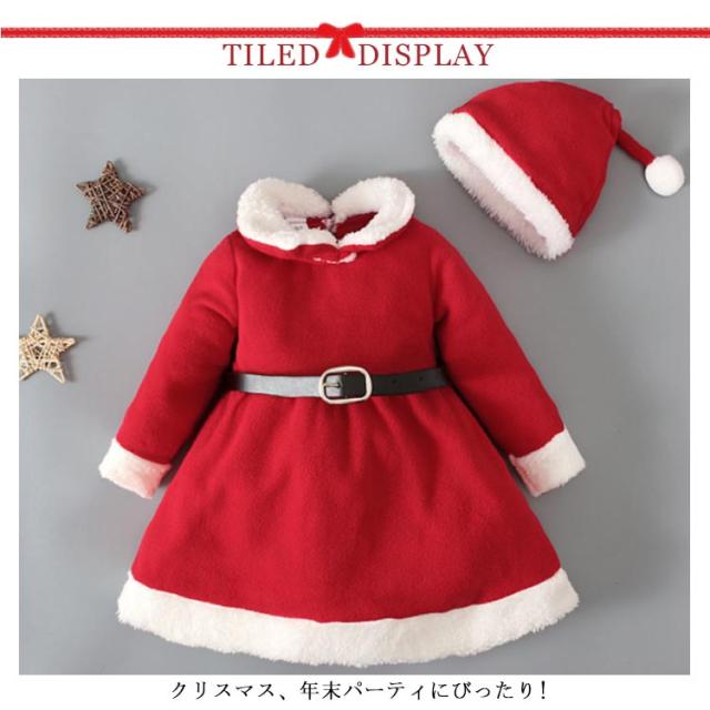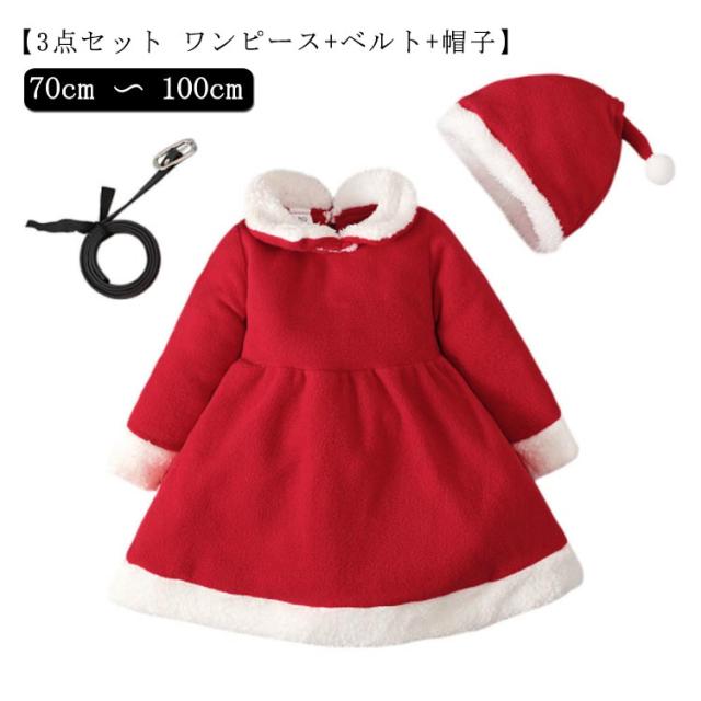 【3点セット ワンピース+ベルト+帽子】クリスマス コスプレ コスチューム ワンピース 女の子 サンタ サンタクロース コスプレ ベビー服 衣装 セット 子供服 サンタ 赤ちゃん コスプレ 長袖 ワンピース