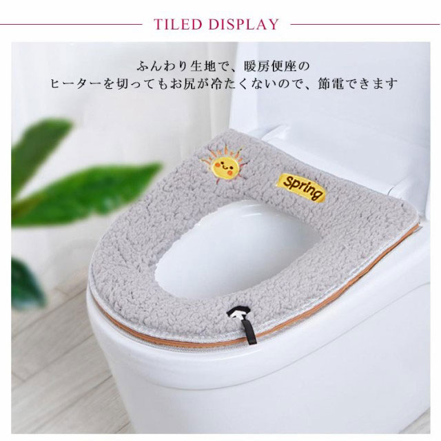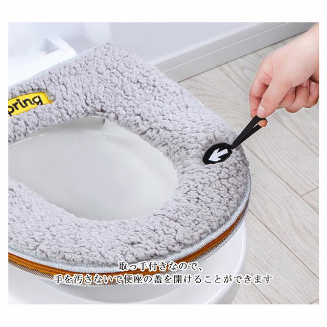 | ふわふわタッチで肌触りのよい便座シートです。 便器カバーを便器の蓋に当てて、ファスナーでしっかりと閉めて、完成します 取っ手付きなので、手を汚さないで便座の蓋を開けることができます ふんわり生地で、暖房便座のヒーターを切ってもお尻が冷たくないので、節電できます 洗浄暖房型、O型、U型、どのタイプの便座にも使用できます 繰り返し洗濯機で丸洗いできます。(ネット使用) | |