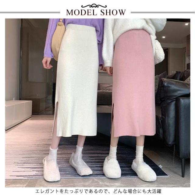 送料無料 ニットスカート スカート 春 スリット リブニット タイトスカートプリーツ スカート 動けるストレッチ リブニットスカート レディース ニット リブ スリット ロングスカート おしゃれ
