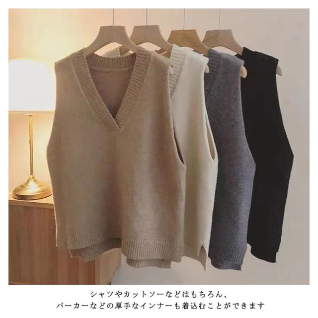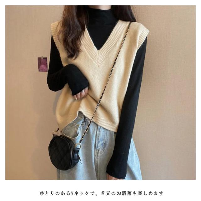 送料無料 ベスト ニットベスト レディース 韓国 ゆったり ニット ベスト レディース ファッション ニットベスト 春 秋冬 ニット トップス ベスト vネック おしゃれ ノースリーブ シンプル 無地 カジュアル レイヤード 重ね着 ベスト 秋 冬 春 ブラック ベージュ