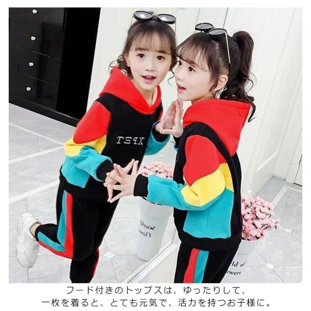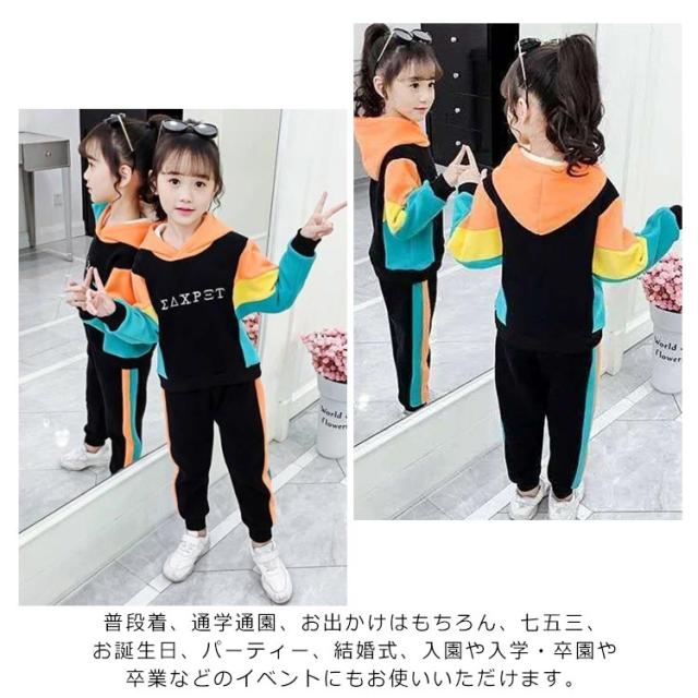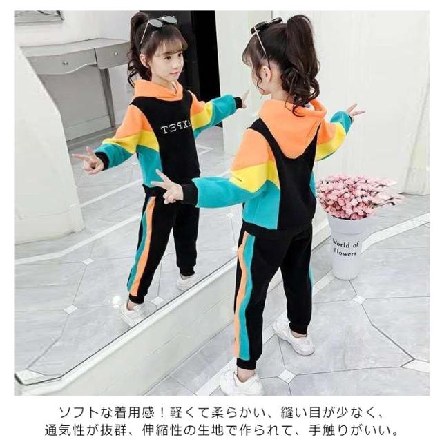 女の子 セットアップ 2点セット パーカー ボトムス セット 可愛い 上下セット 小学生 中学生 女子 簡単コーデ 長袖 長ズボン スポーツウェア ランニング 運動 レジャー アウトドア おでかけ 万能 便利 おしゃれ かわいい 2点セット