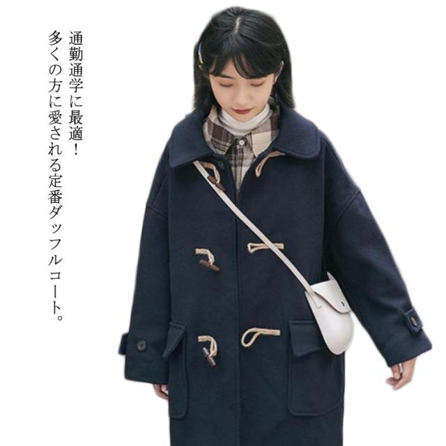ダッフルコート アウター レディース ジュニア 女の子 ロングコート スクールコート スクールアウター 中綿コート 長袖 膝丈 厚手 中綿入り 薄手 秋冬 冬服 カジュアル 通勤 通学 羽織り メルトン 大きいサイズ ダッフルコート ネイビー