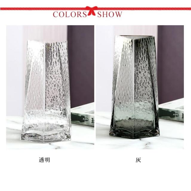 | ダイヤのようにカットされた多面体がスタイリッシュでおしゃれなガラス花瓶。 人気の北欧テイストや韓国インテリアにはもちろん、シック、和モダン、ナチュラルなど、和風、洋風問わずさまざまなインテリアにマッチします。 グレー(灰色)とクリア(透明)、どちらも口にゴールド(金色)を配したビンテージの趣を感じる質感です。 同じカラーやサイズ違いで並べても粋に見えます。 大型フラワーベースは底面に厚みのある形が特徴。 上に向かって細くなる細口の花びんは、お花や枝もの一本を飾っても絵になります。一輪挿しのように気軽に花を活けられるインテリア雑貨です。 | |
