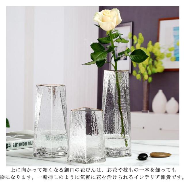 【Mサイズ】花瓶 フラワーベース ガラス 北欧 透明 クリア ゴールド 大きい花瓶 大 大きいサイズ 高22.5cm 枝物 部屋 インテリア 雑貨 北欧