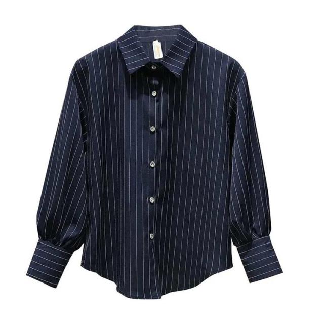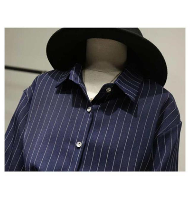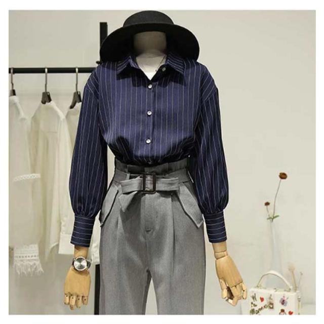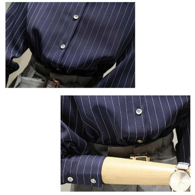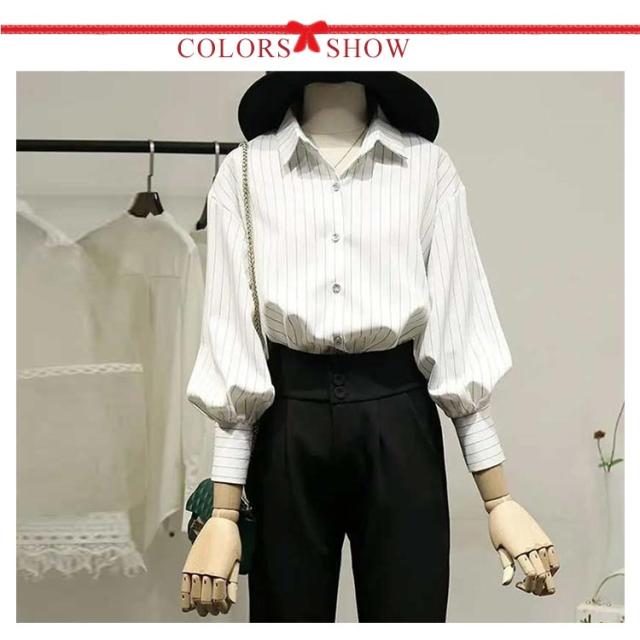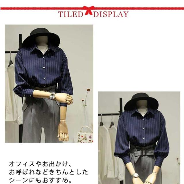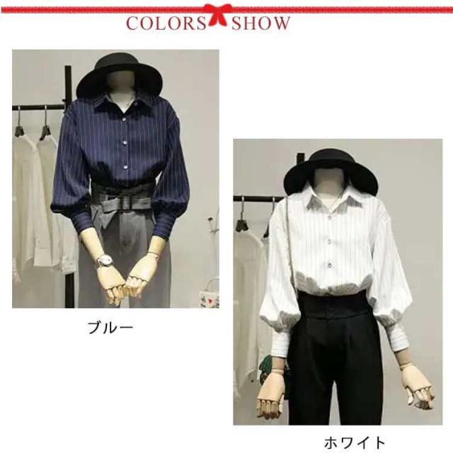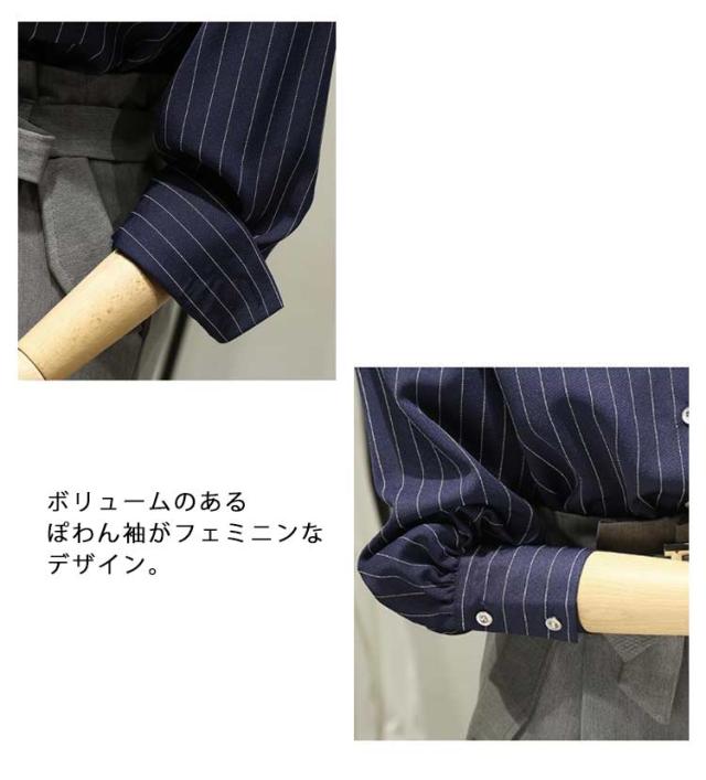 ワイシャツ レディース 7分袖 ボリューム袖 ストライプ柄 バルーンスリーブ 長袖シャツ パフスリーブ トップス 春秋 おしゃれ カジュアル ビジネス 会社 オフェス