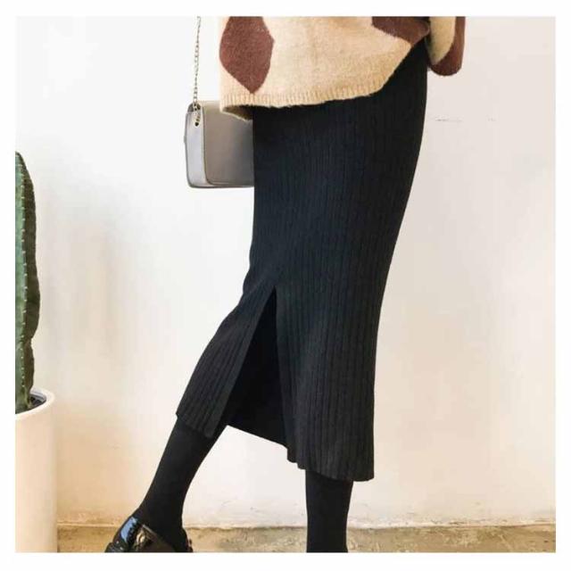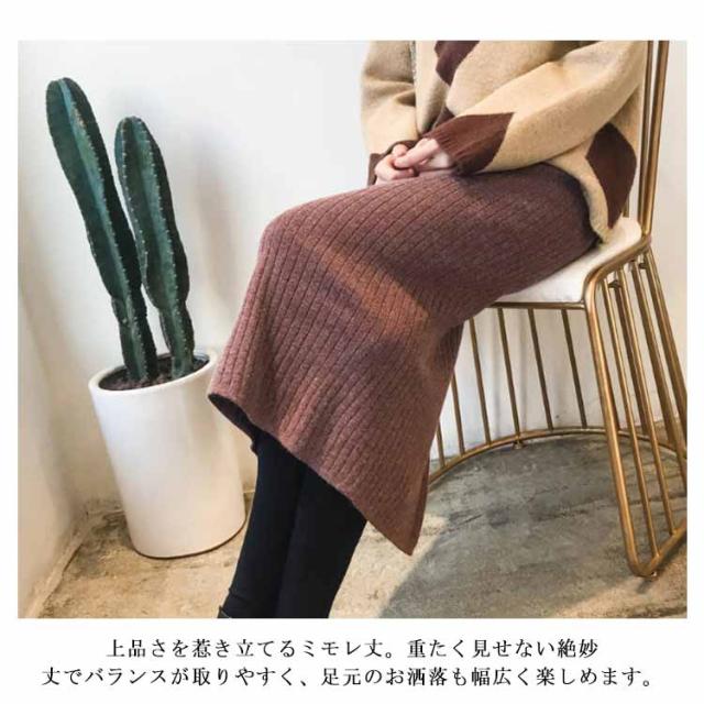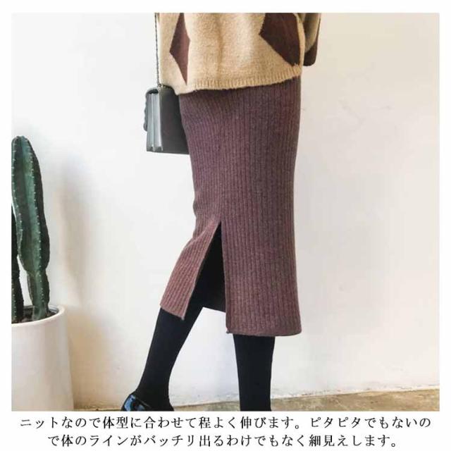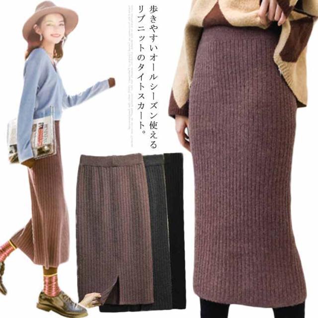 タイトスカート ニットスカート スリット レディース ニット スカート タイト ミモレ丈 リブニット スリット入り ウエストゴム ストレッチ ペンシルスカート ナロースカート スリム オフィス カジュアル 体型カバー 美脚 セクシー