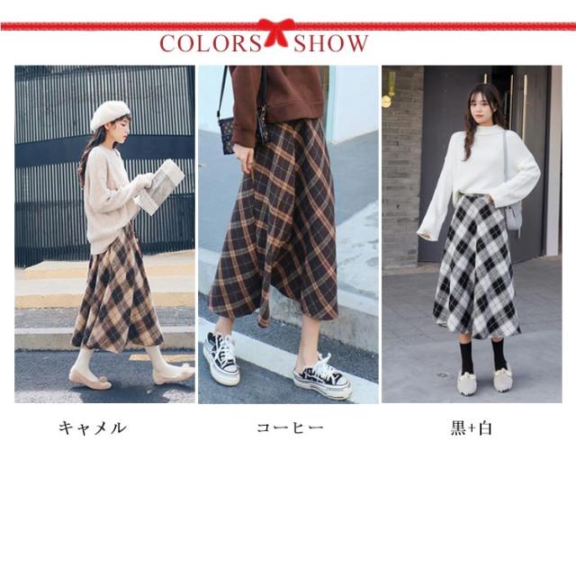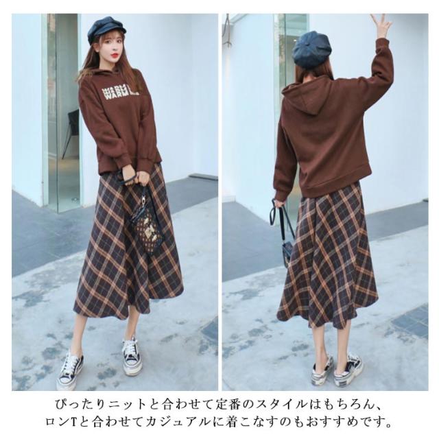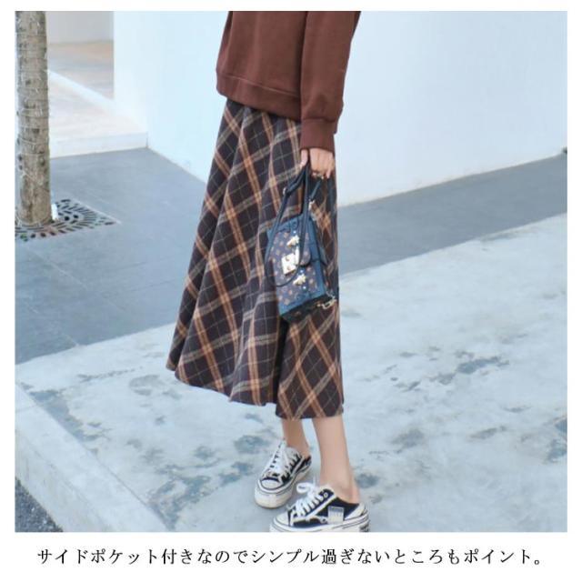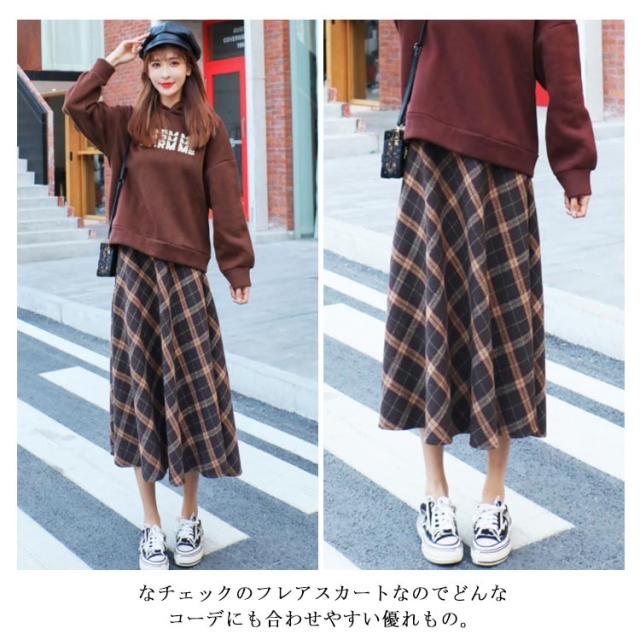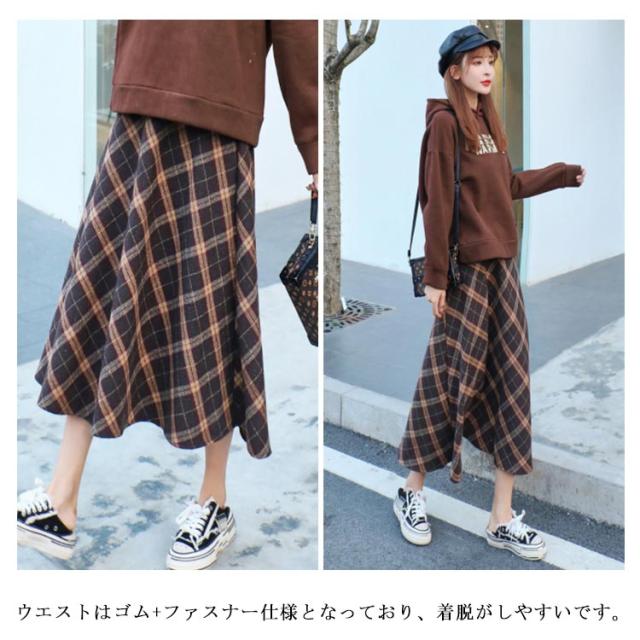 フレアスカート Aラインスカート ひざ下 無地 チェック 秋冬 スカート ミモレ ファスナー ゴム シンプル ミディ丈 上品 清楚 レディース ロング 膝下 ミモレ丈 Aライン フレア 裏地 秋 冬 春 カジュアル フェイク ウール