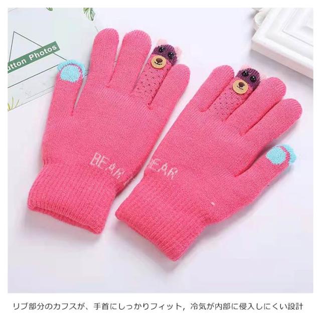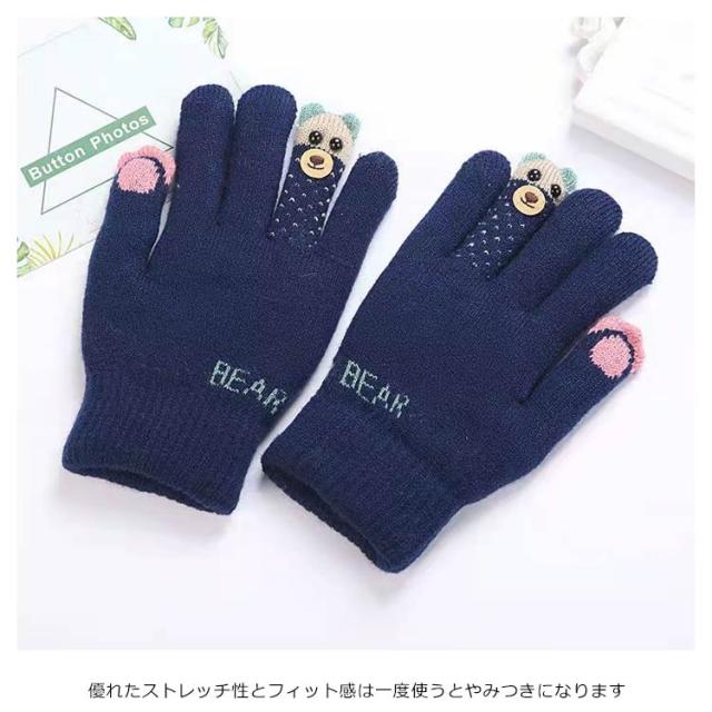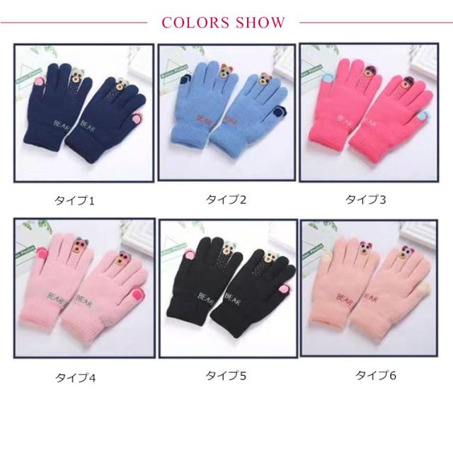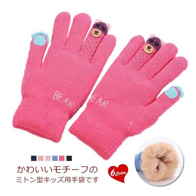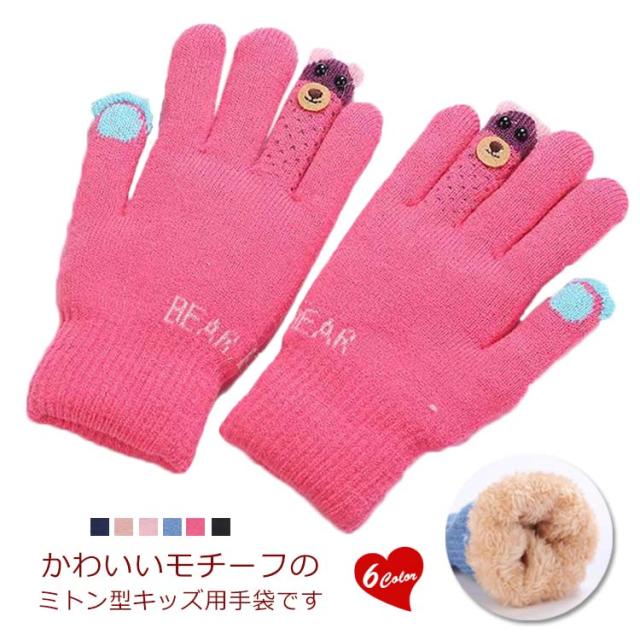 手袋 キッズ 裏起毛 女の子 男の子 グローブ 手ぶくろ 子供 子ども あったか ニット おしゃれ 5本指 防寒 ワンサイズ 送料無料