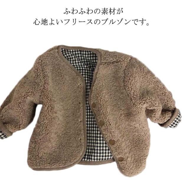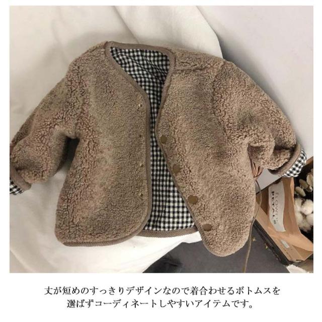 ボアコート キッズ リバーシブルコート 女の子 男の子 ボアジャケット チェック ボアブルゾン シンプル もこもこ 両面コート ジップアップ キッズ服 カジュアルコート ブルゾン プリングコート 春コート 子供 ジャケット