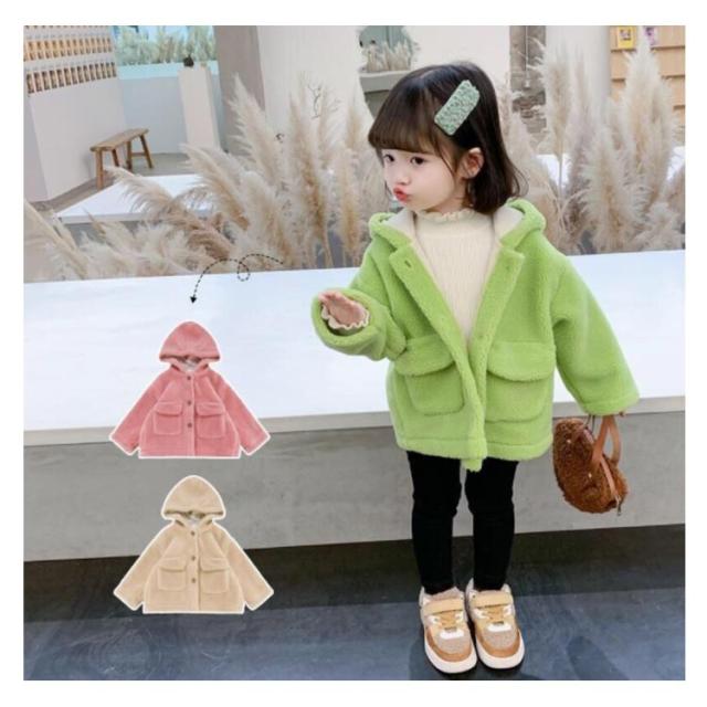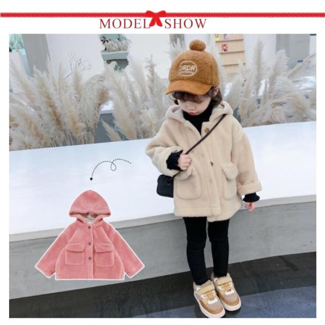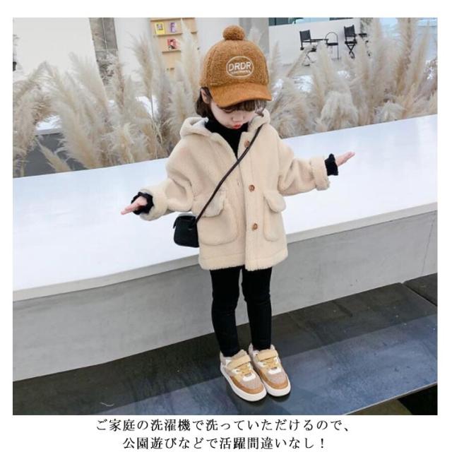 ボアコート キッズ 女の子 ボアジャケット ボアブルゾン フード付き シンプル もこもこ キッズ服 カジュアルコート ブルゾン プリングコート 春コート 子供 ジャケット 韓国 子供服 女の子 秋冬