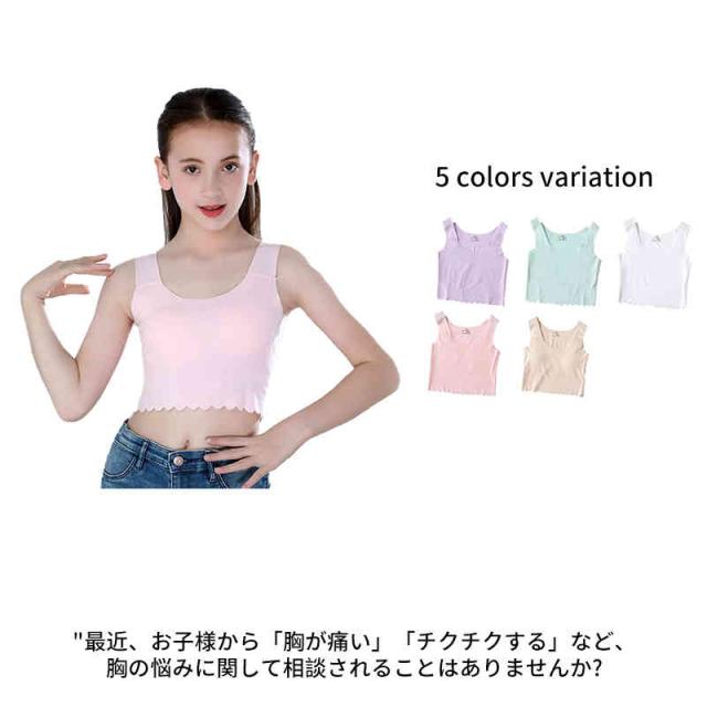 | 最近、お子様から「胸が痛い」「チクチクする」など、胸の悩みに関して相談されることはありませんか? ポイント 肌に優しい素材、派手な色はダメ、ブラよりブラキャミソールが主流、通気性が良いものが欲しい アンダーゴムによる締め付けや、パッドによる群れが気にならないように独自設計!柔らかい半周のアンダーゴムと適度な厚みのパッドでバストを包む安定感を実現!ゴム部分の柔らかさにもこだわりました | |