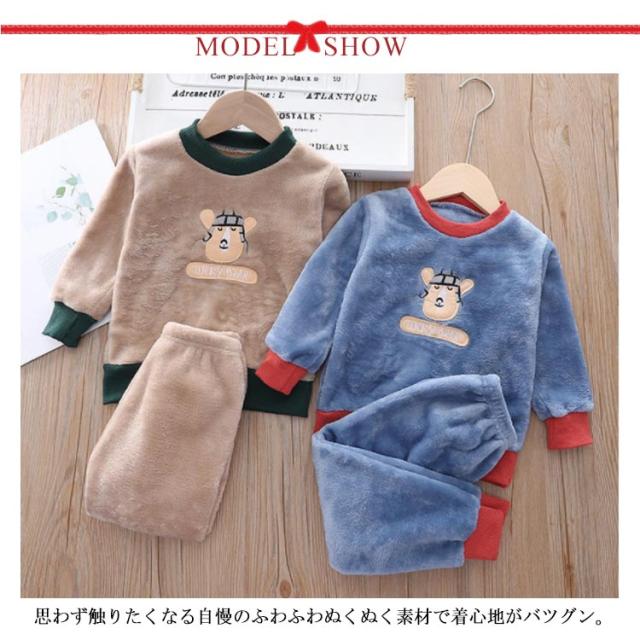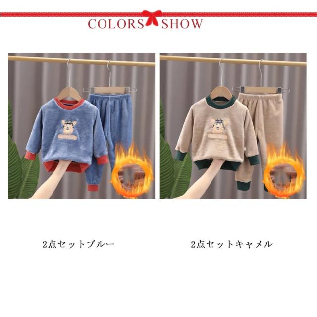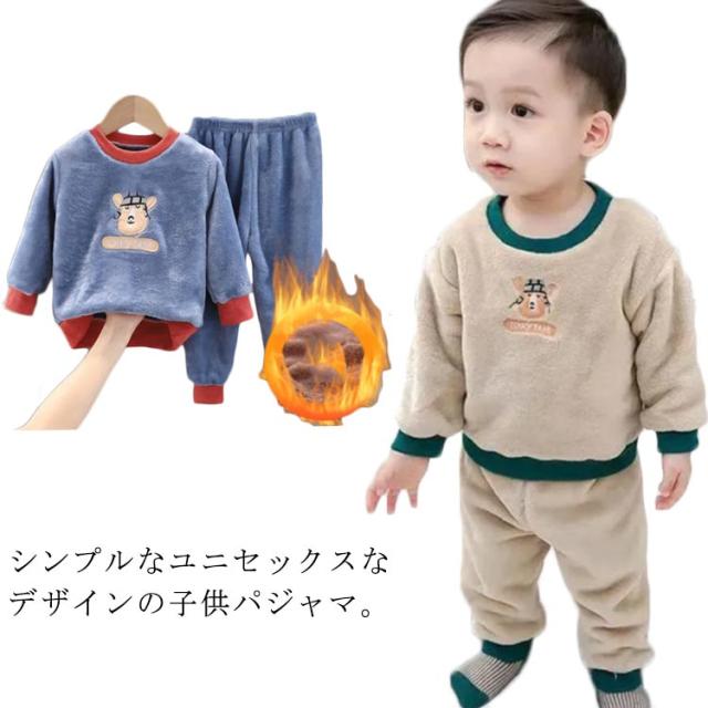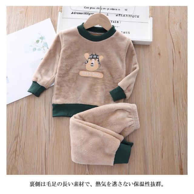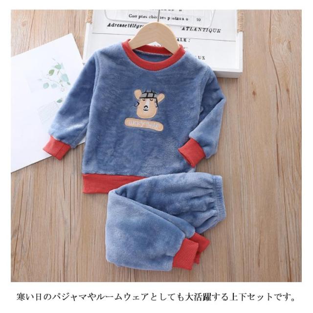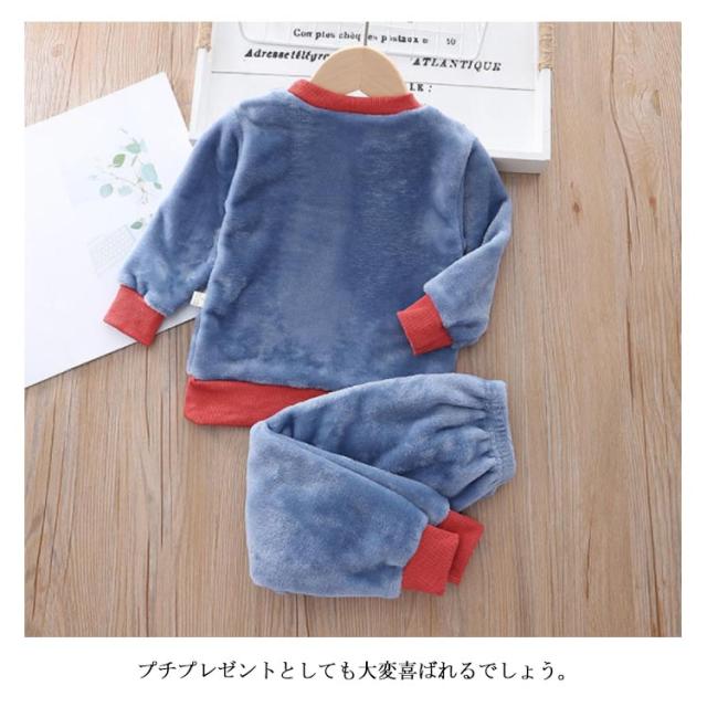 パジャマ 子ども服 上下セット ルームウェア 2点セット もこもこ 可愛い キャラクター 暖かい 秋冬 防寒 クルーネック トレーナー ロングパンツ ボアフリース プチプラ