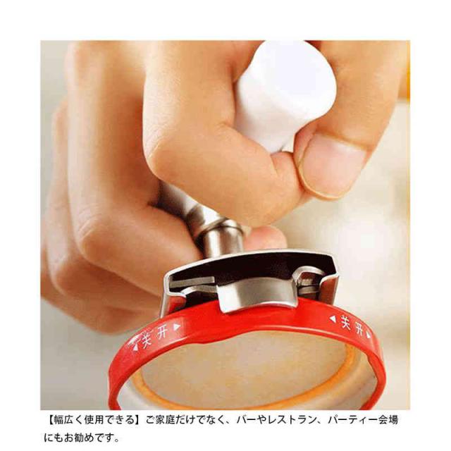| 【力を入れない】 食事中や料理中、時間のない朝ごはん中に、瓶の蓋が固すぎて開かない……なんて時に、誰でもラクラク使用できる簡単なオープナーです。 【多機能】 調整できるタイプのため、冷蔵庫で冷やされて蓋が収縮してキツくなっていたり、内容物が瓶の口に付着して接着剤のように固まったビンなど、なかなか開かないふたを軽い力で開けられます。 【洗練された仕上がり】 シンプルでオシャレなデザインなので、お手入れもしやすいです。 【錆びない】 さびないステンレス素材で作られており、安全で耐久性があります。 【幅広く使用できる】 ご家庭だけでなく、バーやレストラン、パーティー会場にもお勧めです。 | |