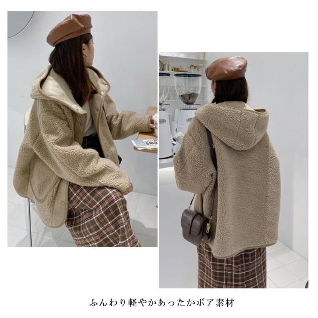 ボアジャケット レディース 秋冬 ボアブルゾン もこもこ ボアアウター ボアパーカー フード付き ボア コート パーカー ドロップショルダー ベージュ 黒 大きいサイズ 冬 秋 秋冬