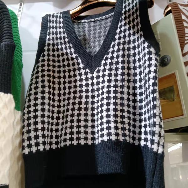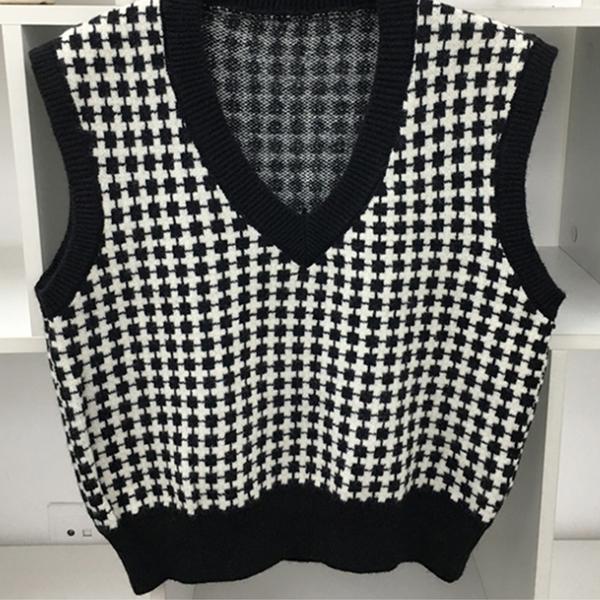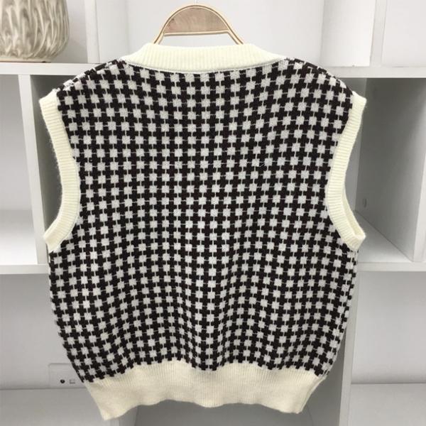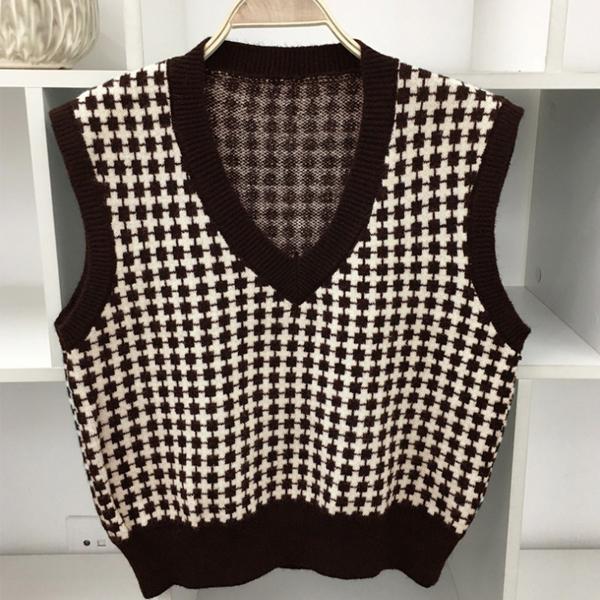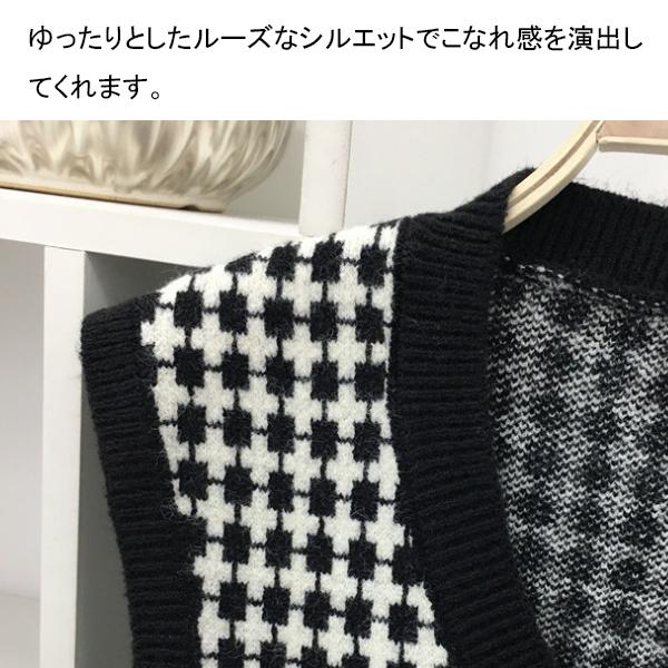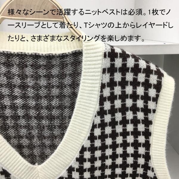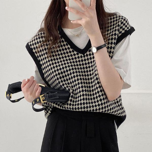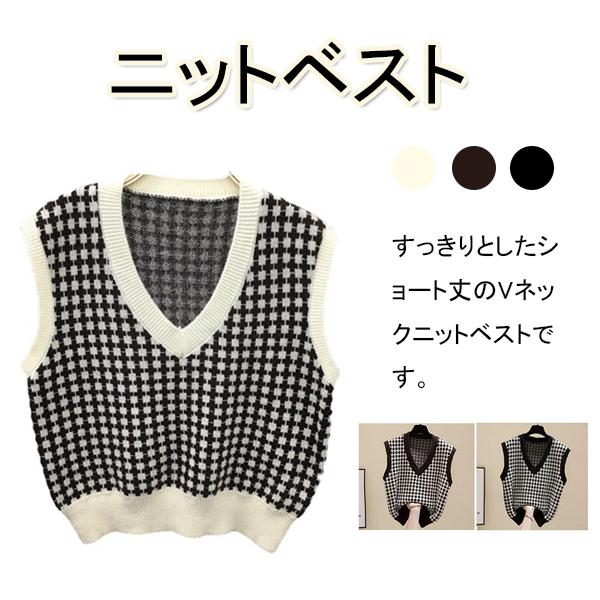 ニットベスト レディース ニット ベスト タンクトップ Vネック 千鳥柄 ゆったり ショートベスト 着痩せ ニット トップス レイヤード ノースリーブ カジュアル 通学 可愛い 春秋冬