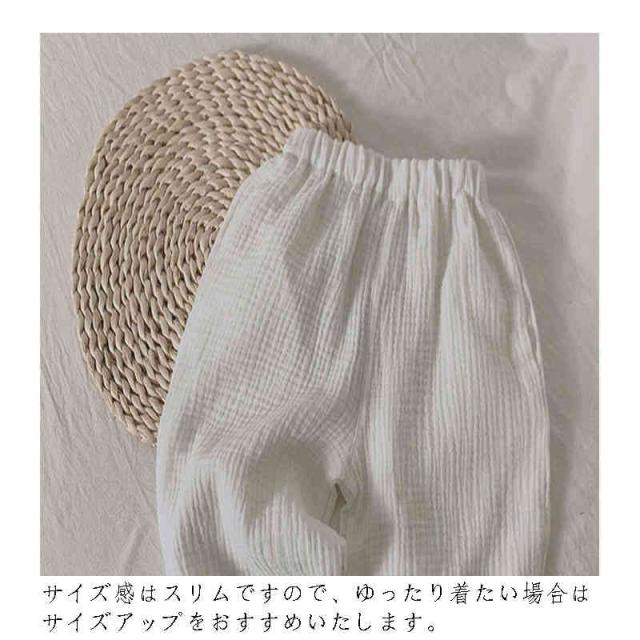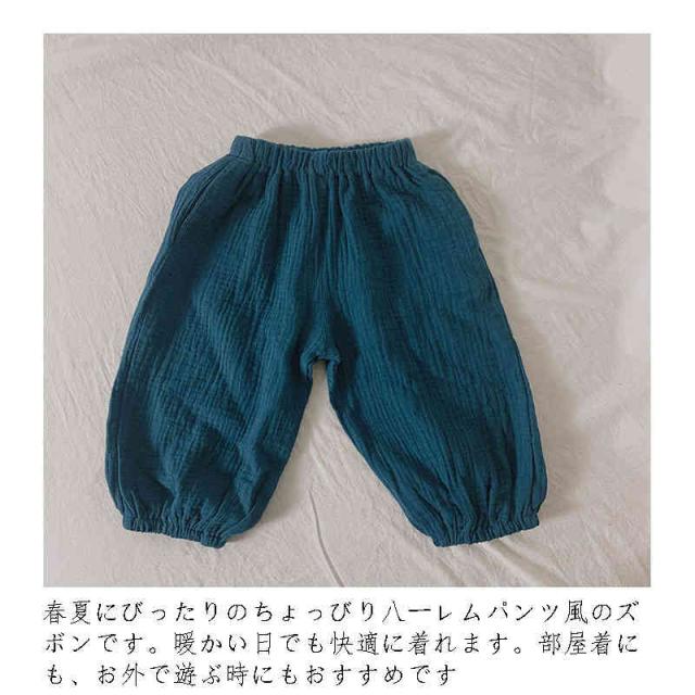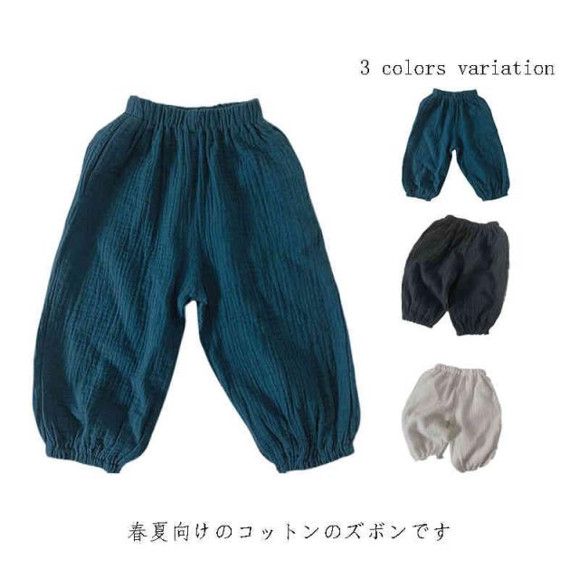 | 春夏向けのコットンのズボンです。 サイズ感はスリムですので、ゆったり着たい場合はサイズアップをおすすめいたします。 春夏にびったりのちょっびり八ーレムパンツ風のズボンです。暖かい日でも快適に着れます。部屋着にも、お外で遊ぶ時にもおすすめです | |