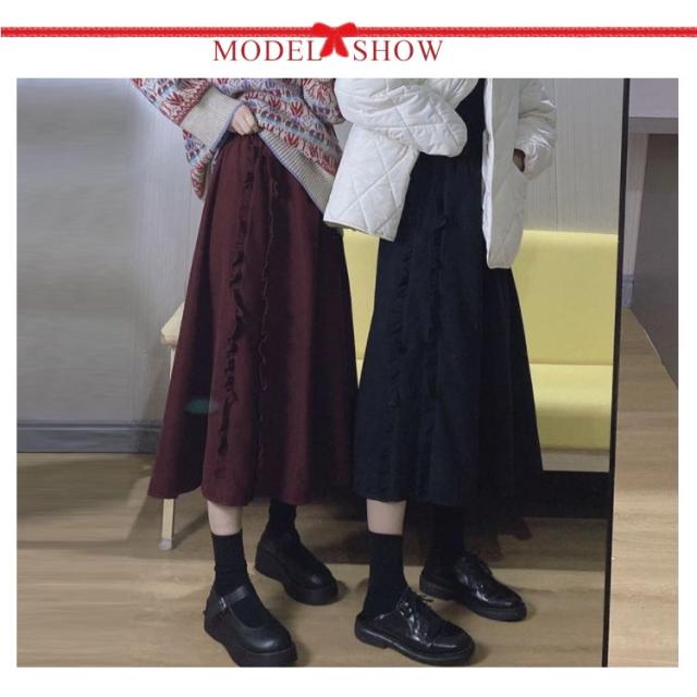 コーデュロイフレアスカート ロング丈 マキシ丈 膝下 ひざ下 フレアスカート ロングスカート 大きいサイズ 秋冬 コーデュロイ タックスカート ロンスカ ウエストゴム コーデュロイスカート カジュアル ナチュラル おしゃれ オシャレ 可愛い