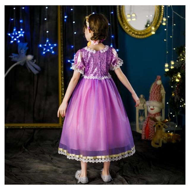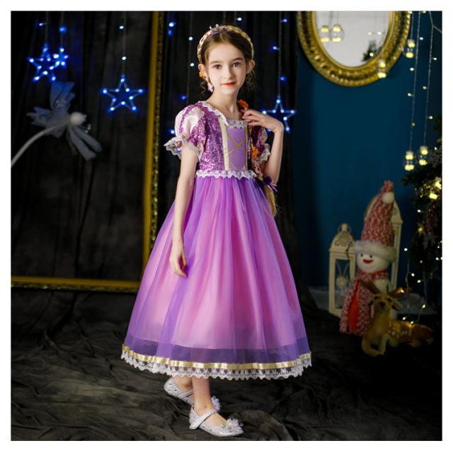 | ふんわりボリュームがあるシルエットが美しいプリンセスドレス♪ たっぷりあしらったスパンコールの輝きがとても印象的。 着るだけでお姫様に変身! 裏地は肌に優しいコットン素材を使用しています。お肌の弱いお子様も安心! 仮装パーティー、舞台、演奏会、発表会、写真撮影などなどのイベントシーンにピッタリです。 クリスマスやお誕生日プレゼントとしてもおススメ。 | |