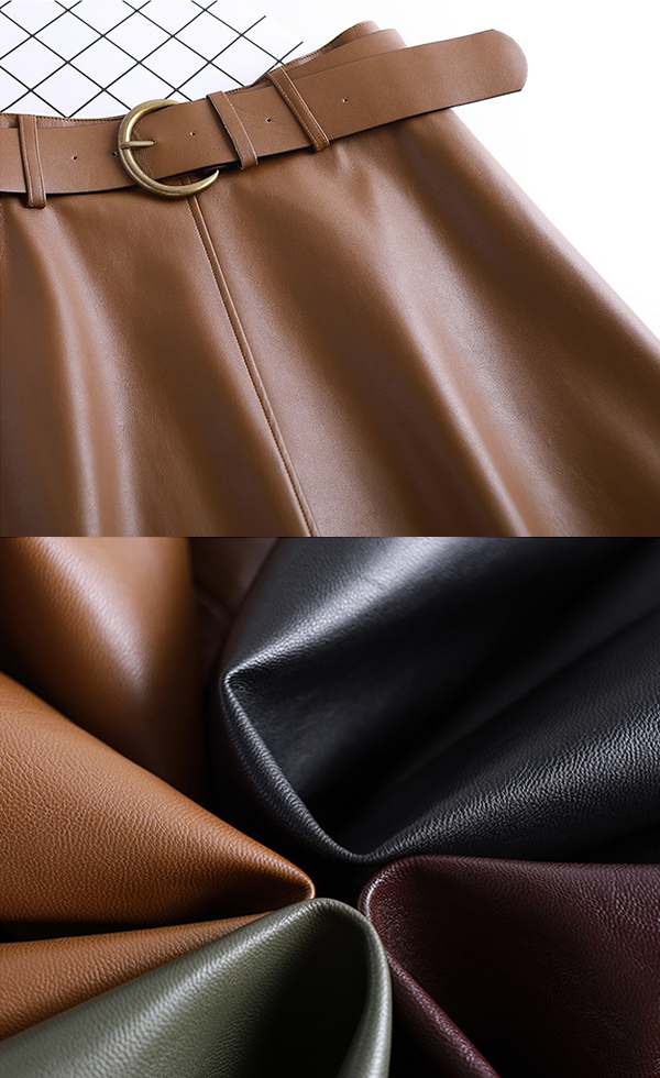 | お洒落さんの間で人気を集めている大人のきれいめレザースカートの登場です。 ベルト付きレザースカートになります。 PUレザーなのでお手入れは簡単♪ 雨の日でも気にせず着ていただけます。 たっぷりの生地を使ったフレアラインは、腰周りや脚をふんわりとカバーしてくれます。 360度どこから見ても美しいシルエット、美しいシルエットを描き、上品なミモレ丈のスカートは女性らしさを最大限に引き出してくれます。 | |