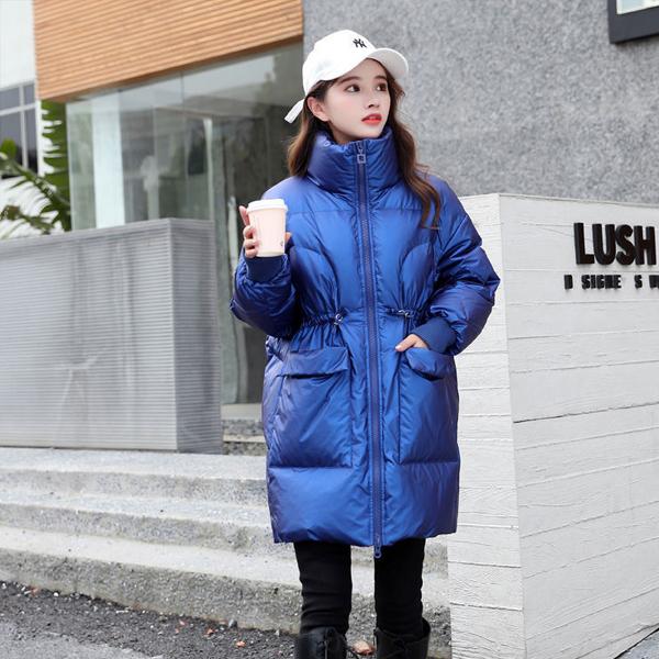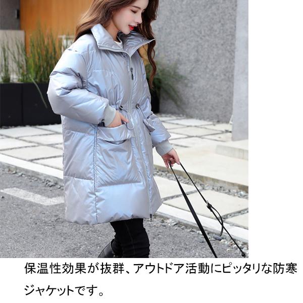 ロングダウンジャケット ダウンコートレディース ロングダウンコート 光沢 冬コート ロング ミドル丈 大きいサイズ 体型カバー スタンドカラー ポケット付き アウター カジュアル おしゃれ ファッション 冬服 秋冬 保温 レディース XS~XL