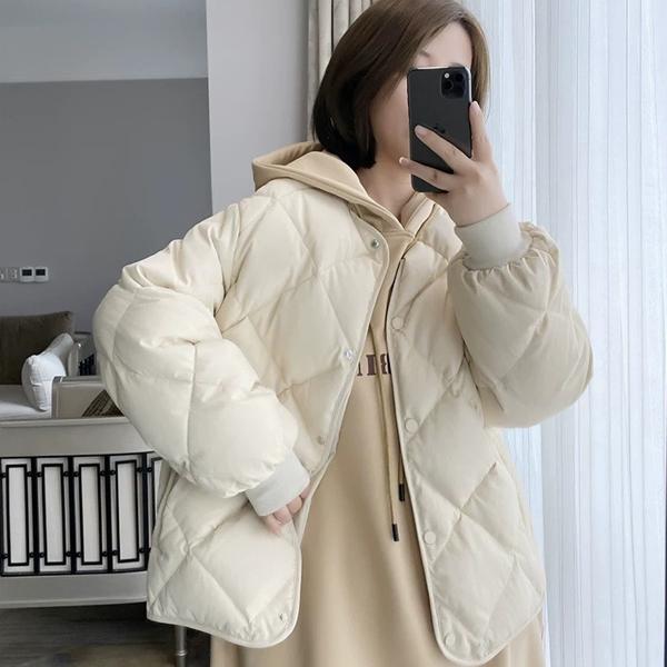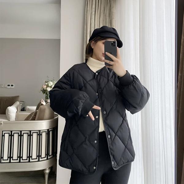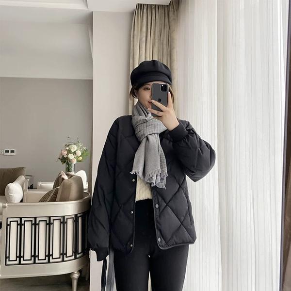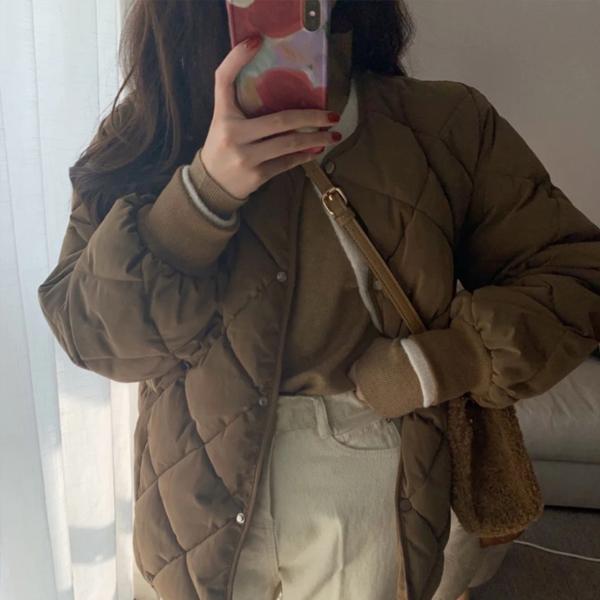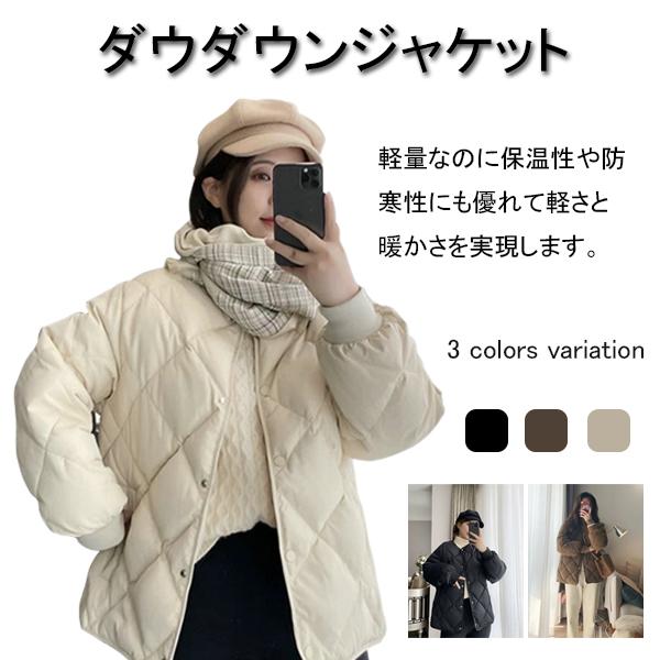 ダウダウンジャケット レディース ダウンコート 軽量 ノーカラー ショート ジャケット トップス 体型カバー ショート丈 菱形 保温 防寒 暖かい かわいい カジュアル ダウン 秋冬 冬物