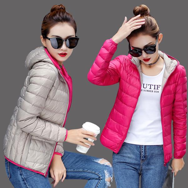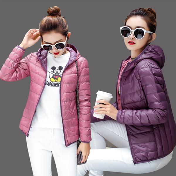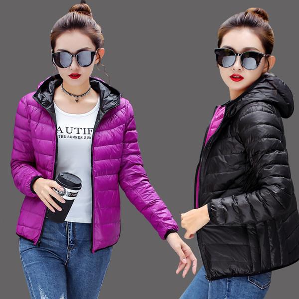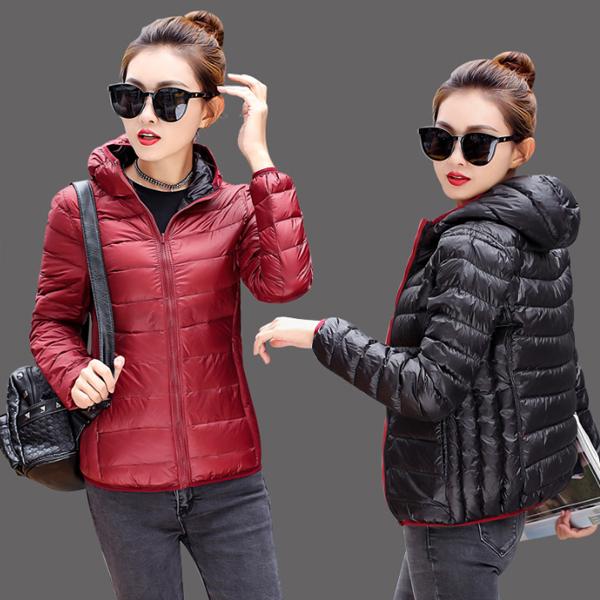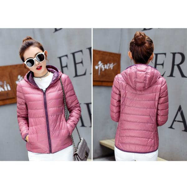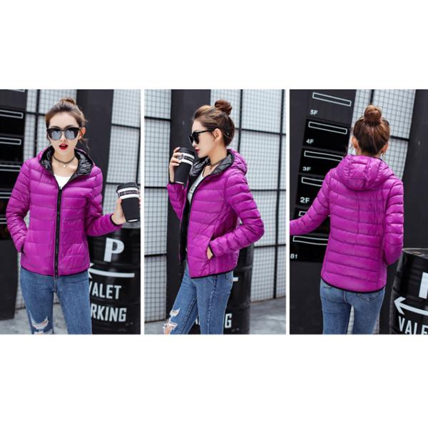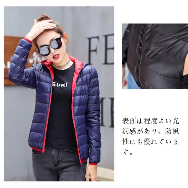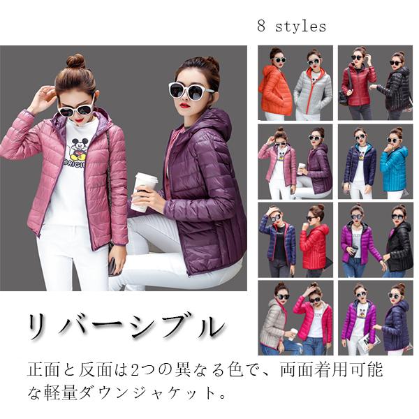 リバーシブル ダウンジャケット レディース ショート ダウンコート 両面着用可能 スリム 大きいサイズ フード付き ポケット付き ショート丈 着痩せ 軽量 ダウンパーカー 暖かい カジュアル 保温 防寒 冬 M~4XL