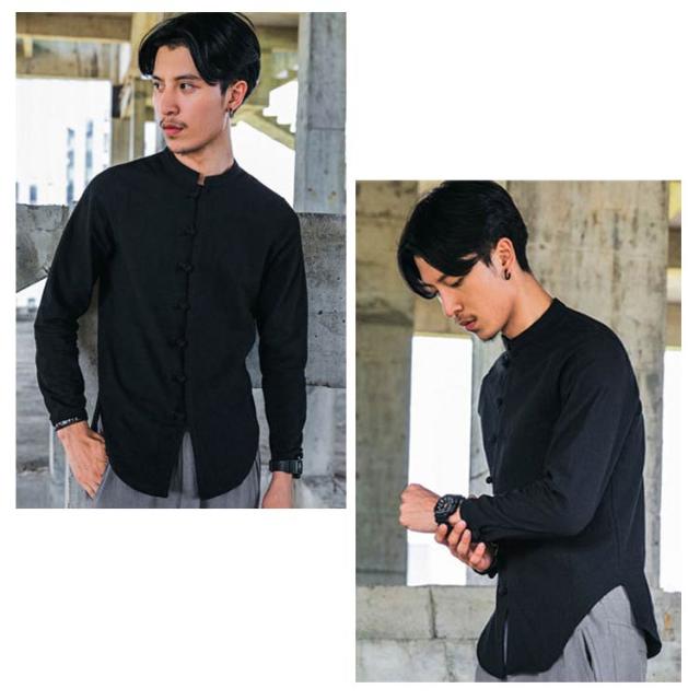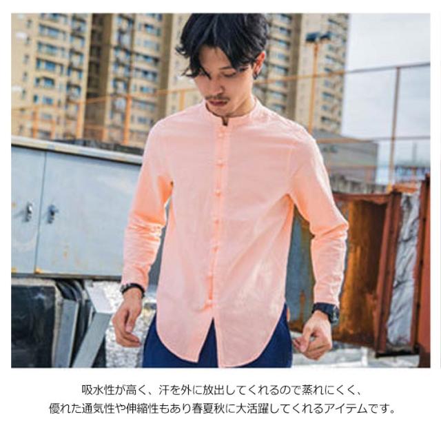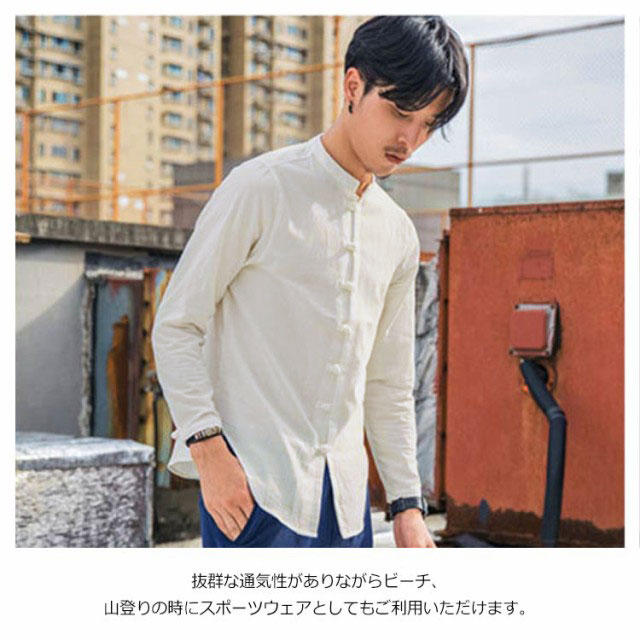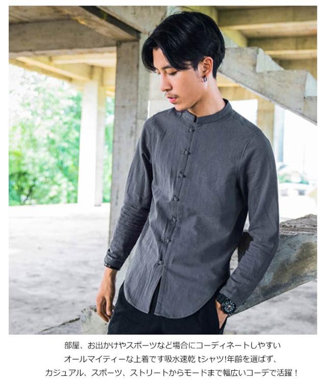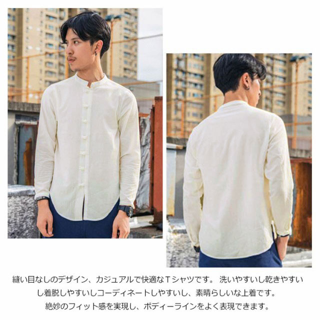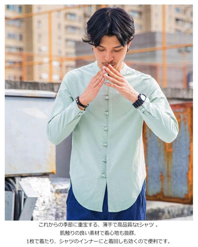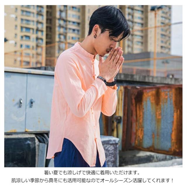 送料無料 シャツ メンズ 長袖 リネンシャツ メンズ 麻生地 立ち襟 チャイナ風 綿麻 長袖 無地 ナチュラル服 チャイナボタン スタンドカラー 前開き インナー トップス 純色 着痩せ キレイめ 春 痩せ見え 大きサイズ 夏 レトロ