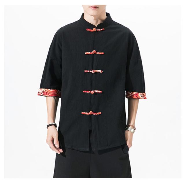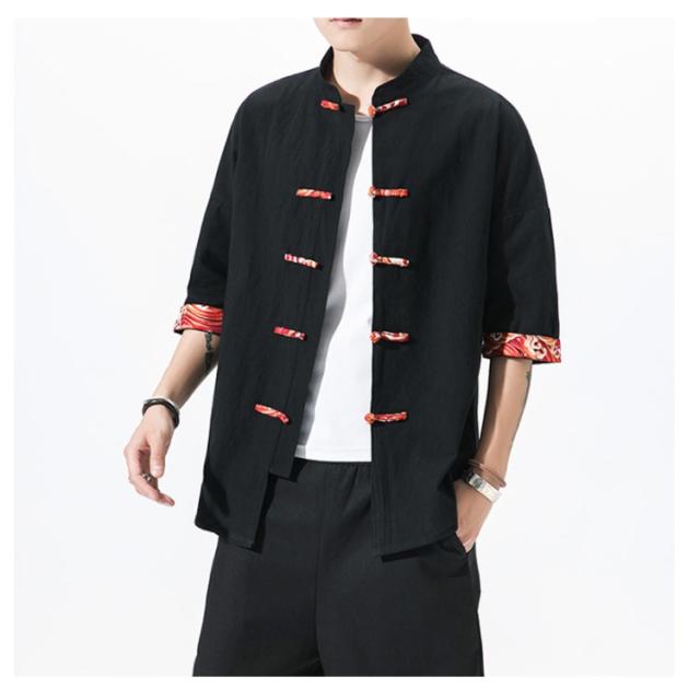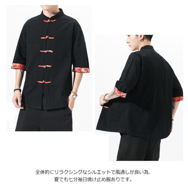送料無料 シャツ メンズ 刺繍 和風 チャイナ風 チャイナ風ボタン メンズ カーディガン 和式パーカー 開襟シャツ 羽織 コート 夏服 和風 綿麻 カジュアル ゆったり 中華風 刺繍 リネン チャイナ 7分袖 夏 大きサイズ