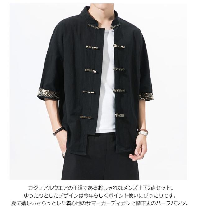 | 全体的にリラクシングなシルエットで風通しが良い為、夏でも七分袖日焼け止め服ありです。和風カーディガンとハーフパンツのセットアップが登場。上着半袖tシャツは前開きのスタイルやプリント柄のデザインで、リラックス感をプラスしてくれた上に、サンシャインや明るさも演出します。ロングカーディガンと半パンツの2点セット。 ポリエステルの素材で、柔軟さ、軽量さ、通気性、速乾性などに優れ、どんな動きにも体のラインに沿うようなフィット感を持ち、長時間の着用でも穿き心地が快適です。ゆったり、ひんやり、春夏秋には最適!夏のオシャレが満喫できるメンズカジュアルシャツとハレムパンツセットアップ。夏に重宝する和式甚平風ショートズボンセットアップ。 開襟デザインで大人っぽく、お洒落きれいめに。カジュアル綿麻シャツ+ショートズボン二点セットが新登場! カジュアルウエアの王道であるおしゃれなメンズ上下2点セット。ゆったりとしたデザインは今年らしくポイント使いにぴったりです。夏に嬉しいさらっとした着心地のサマーカーディガンと膝下丈のハーフパンツ。 夏物寝間着代わりの部屋着としても、ゆったり楽に着回せお洒落でシンプルな7分Tシャツ&7分袖シャツジャケットが新登場です。通気性のあるコットンリネン素材で作られており、これからの季節でもサラッと涼しく快適に着用できます。ジャケット、ロングズボンのツーピースのセットで、どちらも七分丈になっています。 クールビズ や リラックスウェア、部屋着、普段着、寝巻き、作務衣、ルームウエア、パジャマに夏は海に、花火大会に、春、夏、秋とお使いいただけます。10代、20代、30代、40代、50代とカジュアルに着回しできる、半袖シャツと半ズボンの2点セットです。全体的にリラクシングなシルエットで風通しが良い為、夏でも七分袖ありです。 | |