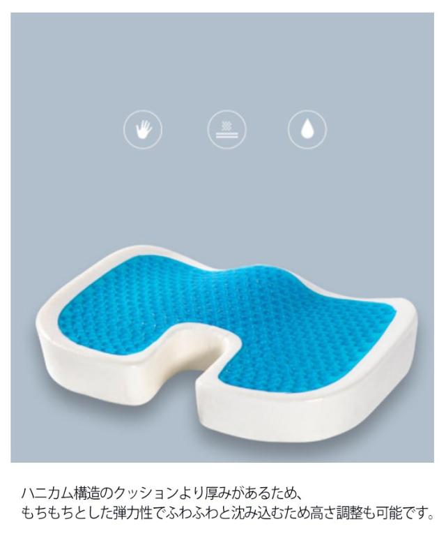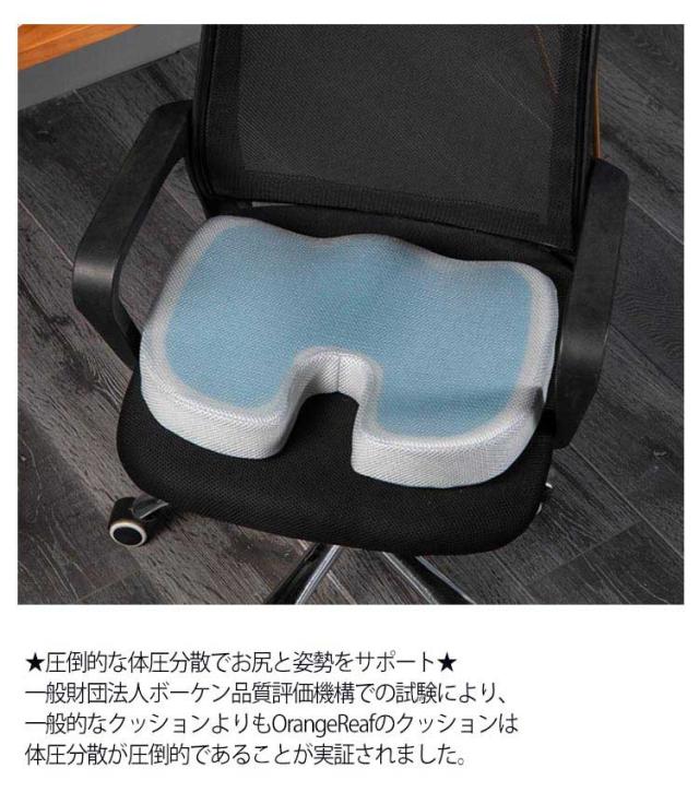 | ★正しい姿勢補助★ 人間工学に基づいた設計の体圧分散により、座るだけで自然と背中の丸みを姿勢矯正して、骨盤の歪み、骨盤底筋、腰の負担などにおすすめのジェルクッションです。 ハニカム構造のクッションより厚みがあるため、もちもちとした弾力性でふわふわと沈み込むため高さ調整も可能です。 ★圧倒的な体圧分散でお尻と姿勢をサポート★ 一般財団法人ボーケン品質評価機構での試験により、一般的なクッションよりもOrangeReafのクッションは体圧分散が圧倒的であることが実証されました。 スーパーゲルの弾力が局部に集中する体圧を分散させてくれるため、お尻の痛みの衝撃吸収を体感ください。サイズも比較的大きめなので、しっかりとお尻を包み込みサポートしてくれます。 お客様からもOrangeReafのジェルクッションを利用することで「長時間座っていても疲れない」「お尻が痛くない」「姿勢が良くなり腰が楽になった」といったお声を多数いただいております。 ★U字設計で尾骨をサポート★ お尻をしっかりと包み込み、独自のU字曲線で痛めやすい尾てい骨、痔などをしっかりとサポートしてくれます。 ★通気性抜群の洗えるクッションカバー付き★ メッシュタイプのカバー付きなので通気性が良く蒸れにくい設計となっています。 カバー裏面には滑り止めも付いているため、滑りやすい椅子からも落ちにくくなります。カバーはそのまま洗濯機で洗濯が可能です。 | |
