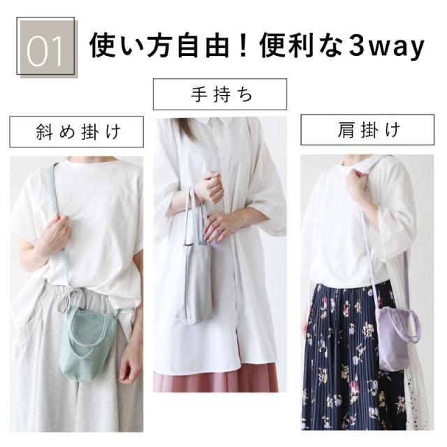 \ちょっとした外出に便利/ステンレス ペットボトルホルダー や 水筒が入る ショルダーバッグ。スマホと財布、鍵だけ入れてウォーキング お買い物 散歩 にも