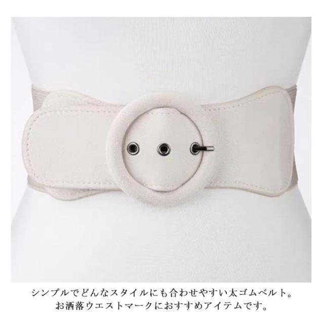 | どんなスタイルにもピッタリ サイズ感も安心ゴムベルト 3段階調整が可能です ◆シンプルでどんなスタイルにも合わせやすい太ゴムベルト。お洒落ウエストマークにおすすめアイテムです。 | |