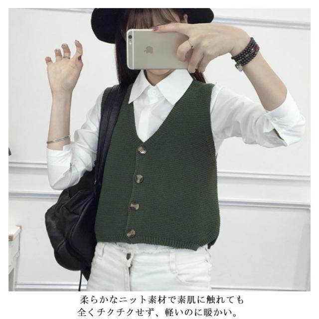 ニットベスト 前開き レディース 前開ベスト ニットカーディガン ノースリーブ ニット ネック シンプル 可愛い 春 秋 送料無料
