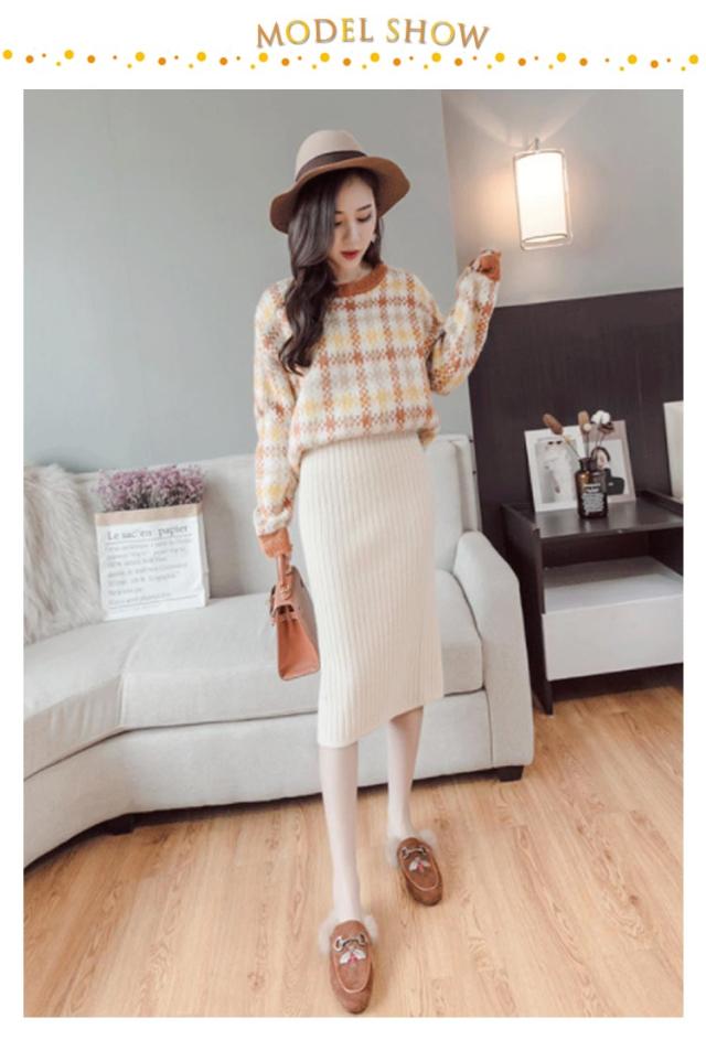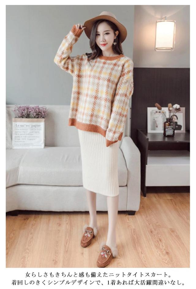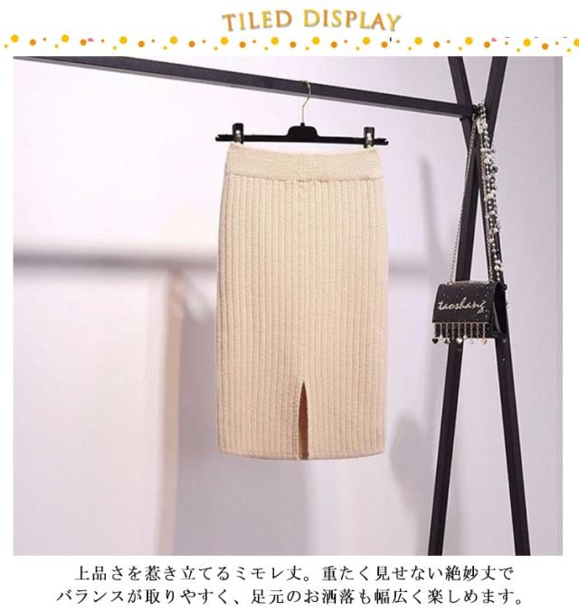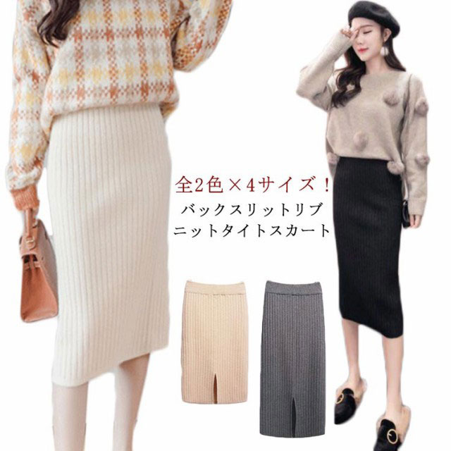 着丈50cm/70cm リブニットスカート タイトスカート ロングスカート ミモレスカート 膝丈スカート ニットスカート リブスカート スリットスカート ミモレ ロング バックスリット ウエストゴム 秋冬 無地 シンプル 送料無料