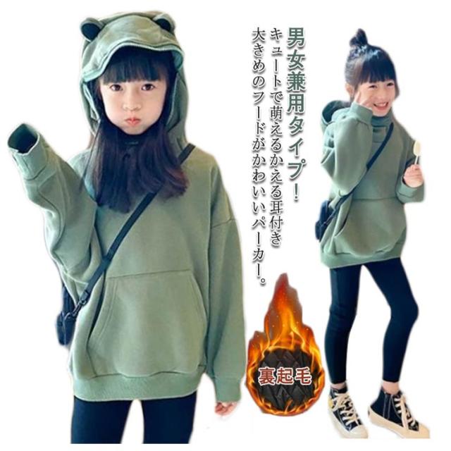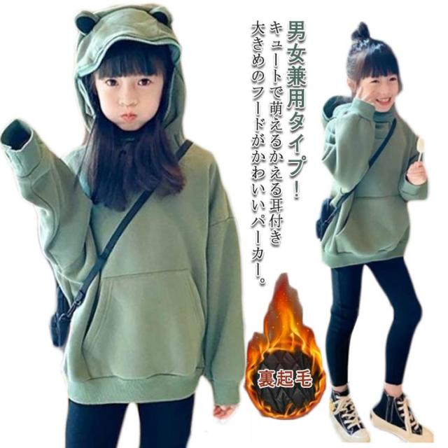 裏起毛 キッズパーカー パーカー 送料無料 かえる 子供服 ロング トレーナー 萌え 動物 蛙 フード付き プルオーバー パーカ トップス キッズ 女の子 男の子 ジュニア ゆったり スウェット カジュアル 大きいサイズ 子ども 学生 110 120 130 140 150 160cm